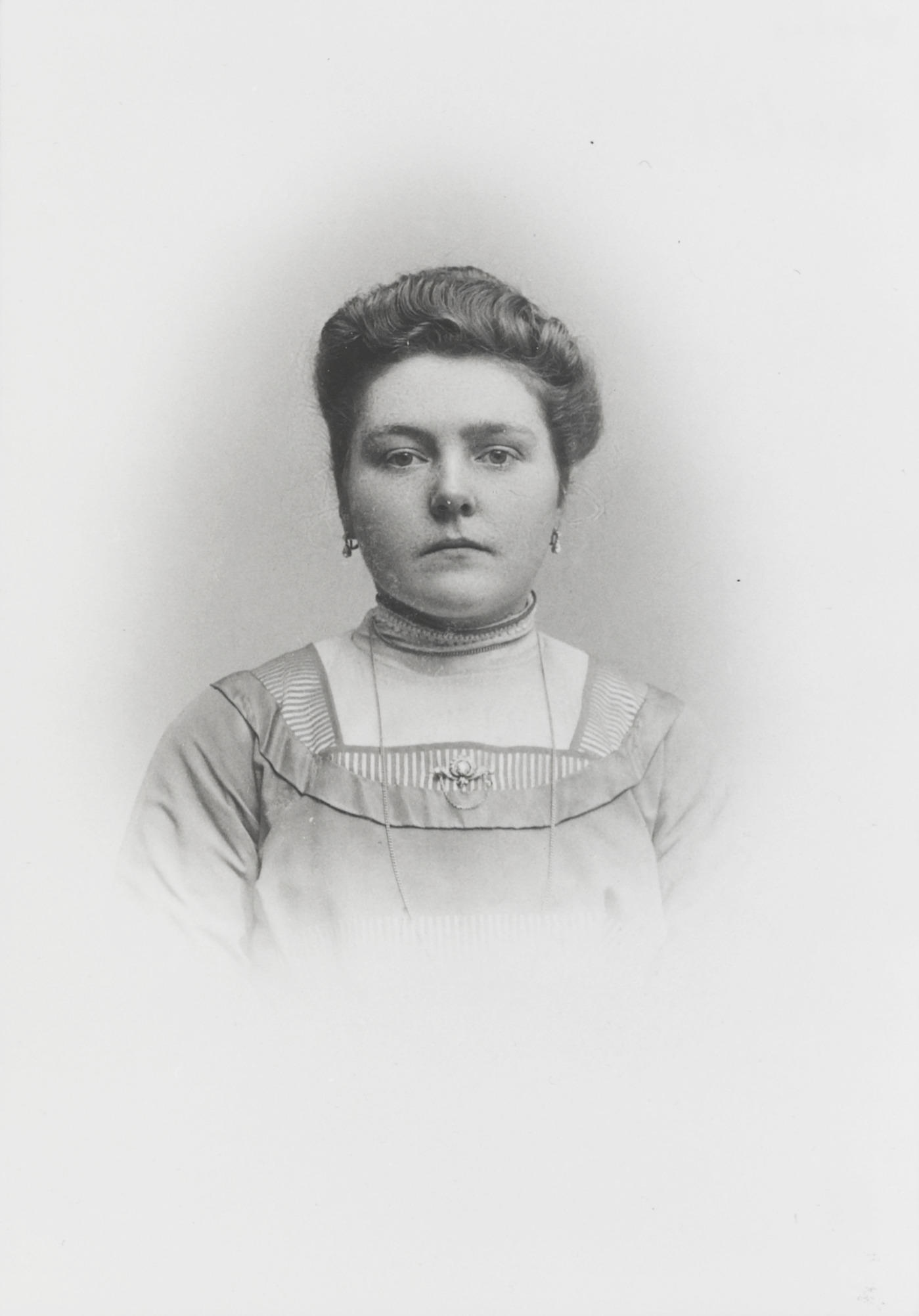 Portret van een vrouw in modedracht. De vrouw is waarschijnlijk afkomstig uit de omgeving van Hoorn.