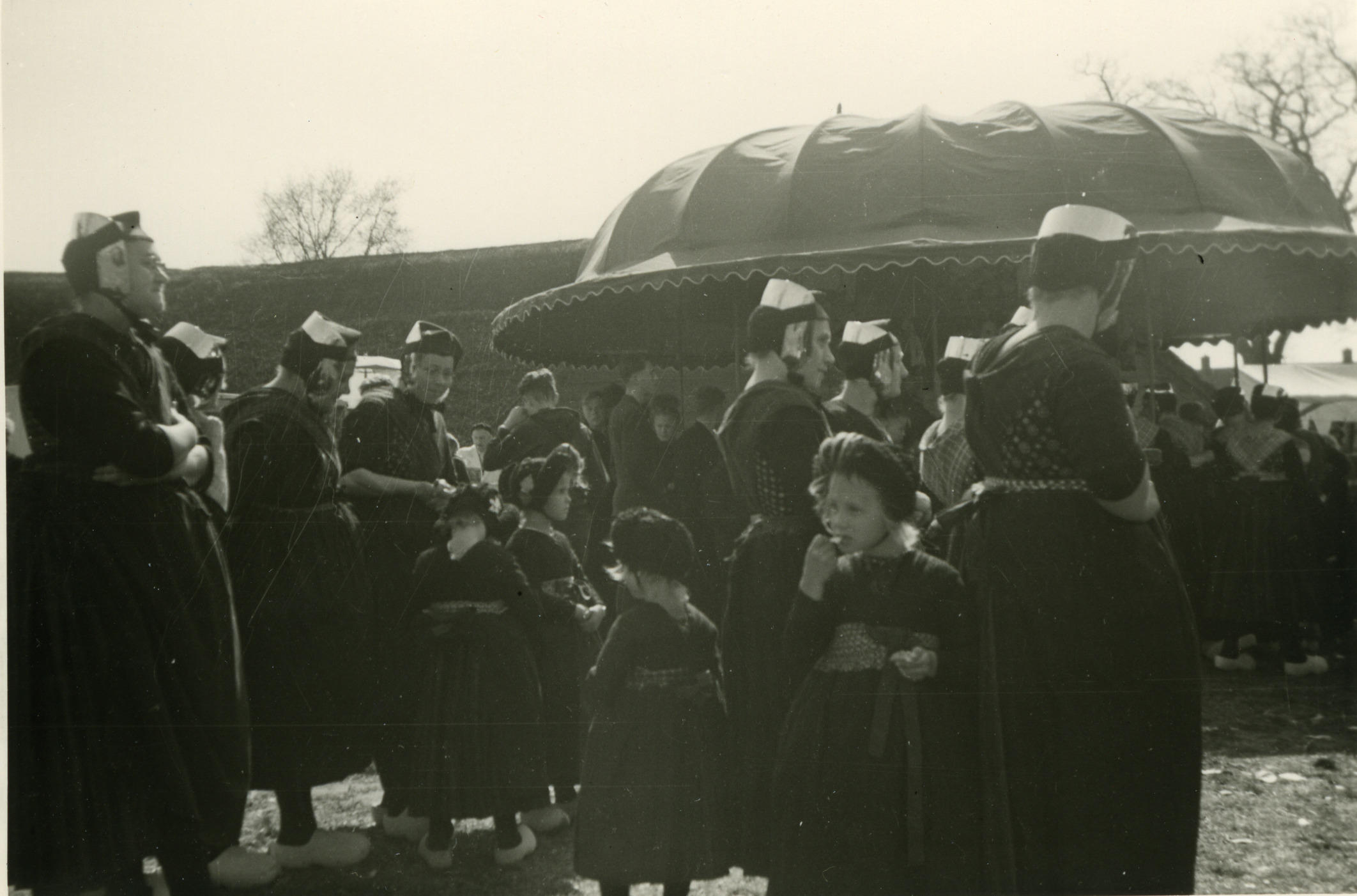 Jaarmarkt in Staphorst. Het meisje rechts vooraan is Hilligje Hoeve; schuin linksachter haar loopt haar moeder Klaasje Hoeve-Witte.