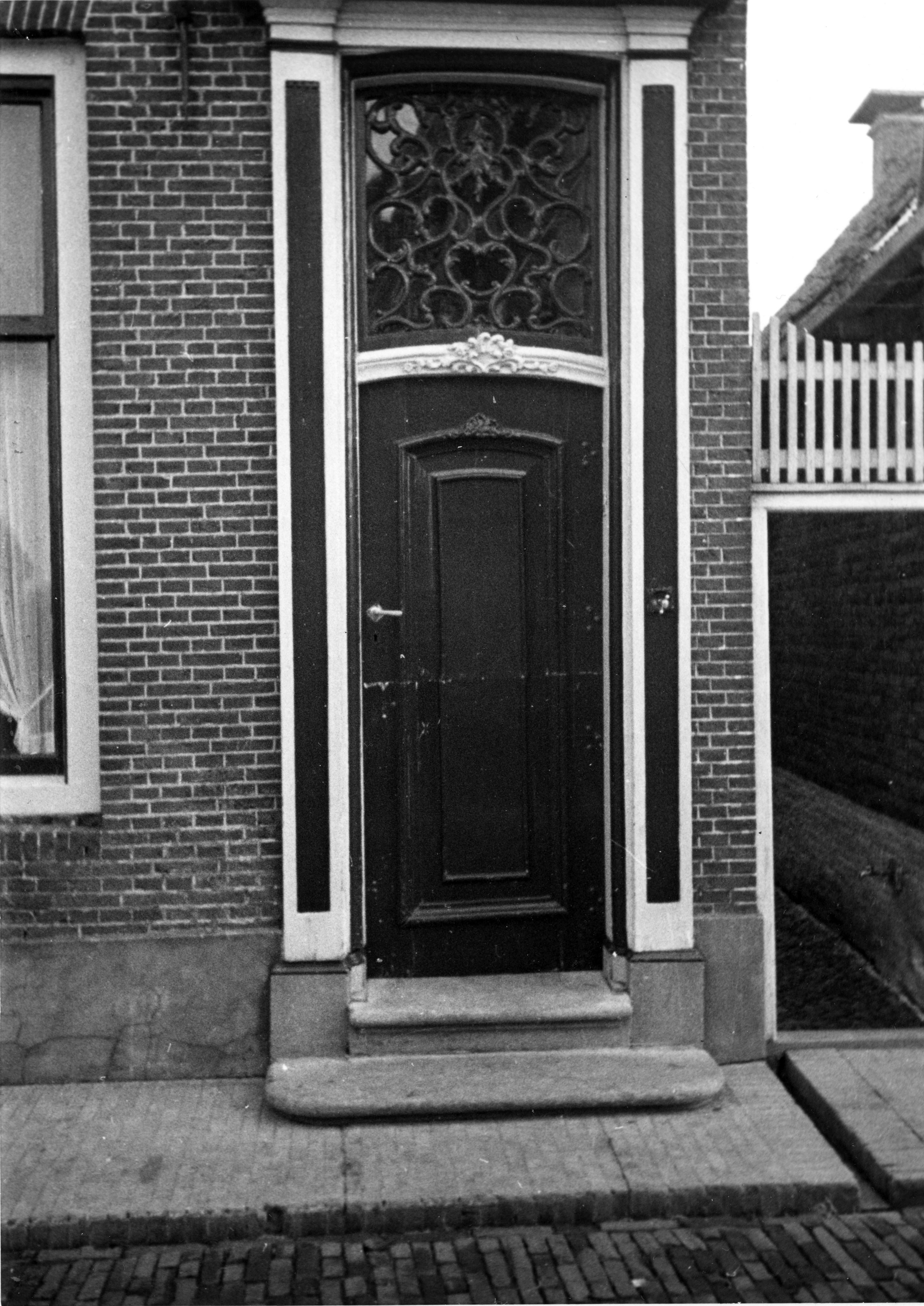 Deur met bewerkt bovenlicht, Hindeloopen, 1943 (zwart-wit negatief)