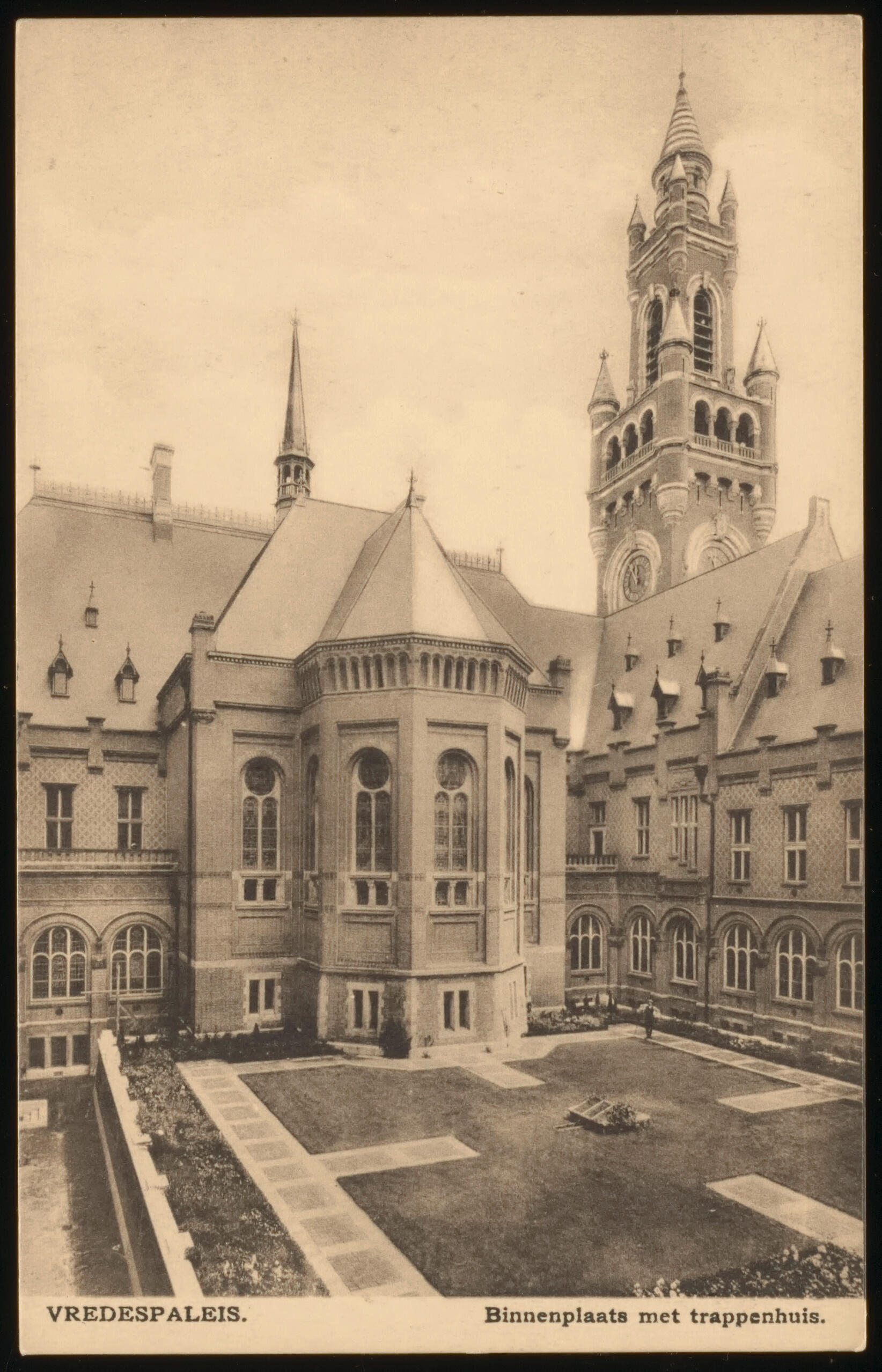 Vredespaleis - Binnenplaats met trappenhuis (ansichtkaart)