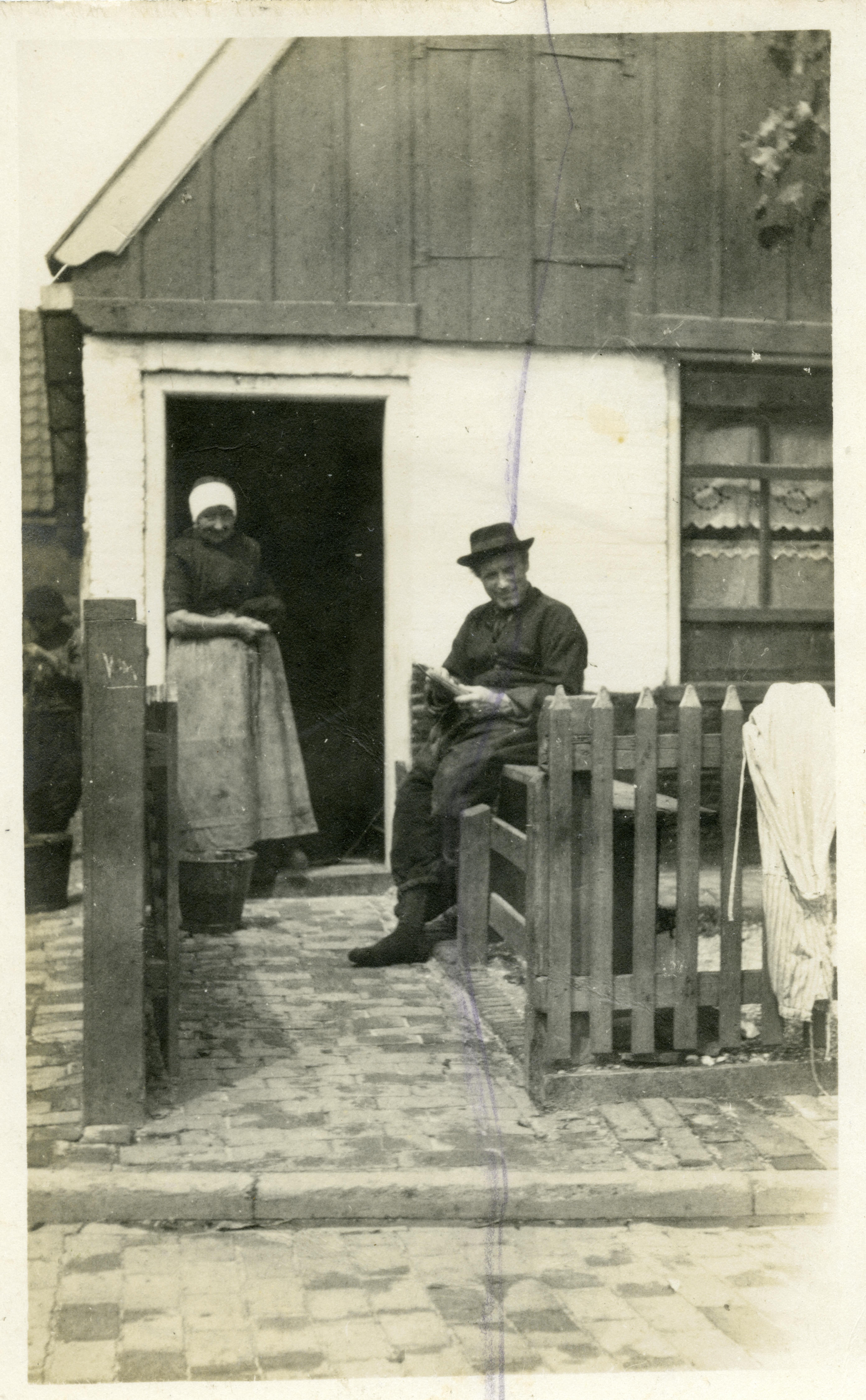 Vrouw en man in Urker streekdracht. Het opschrift op de achterzijde luidt: 'Urk [...] 1920'.