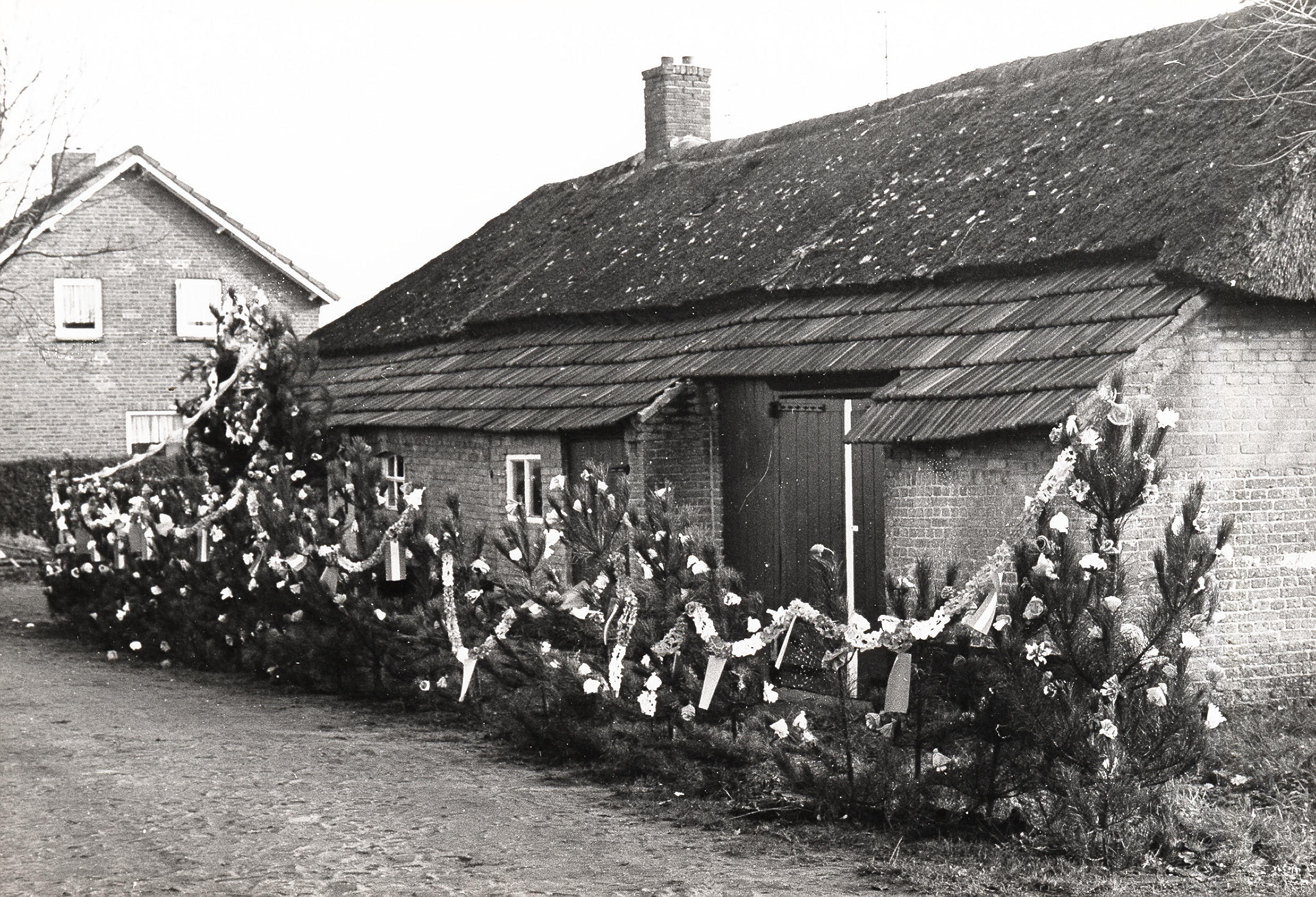 Feestversiering, Heesch, 1970 (zwart-wit foto)