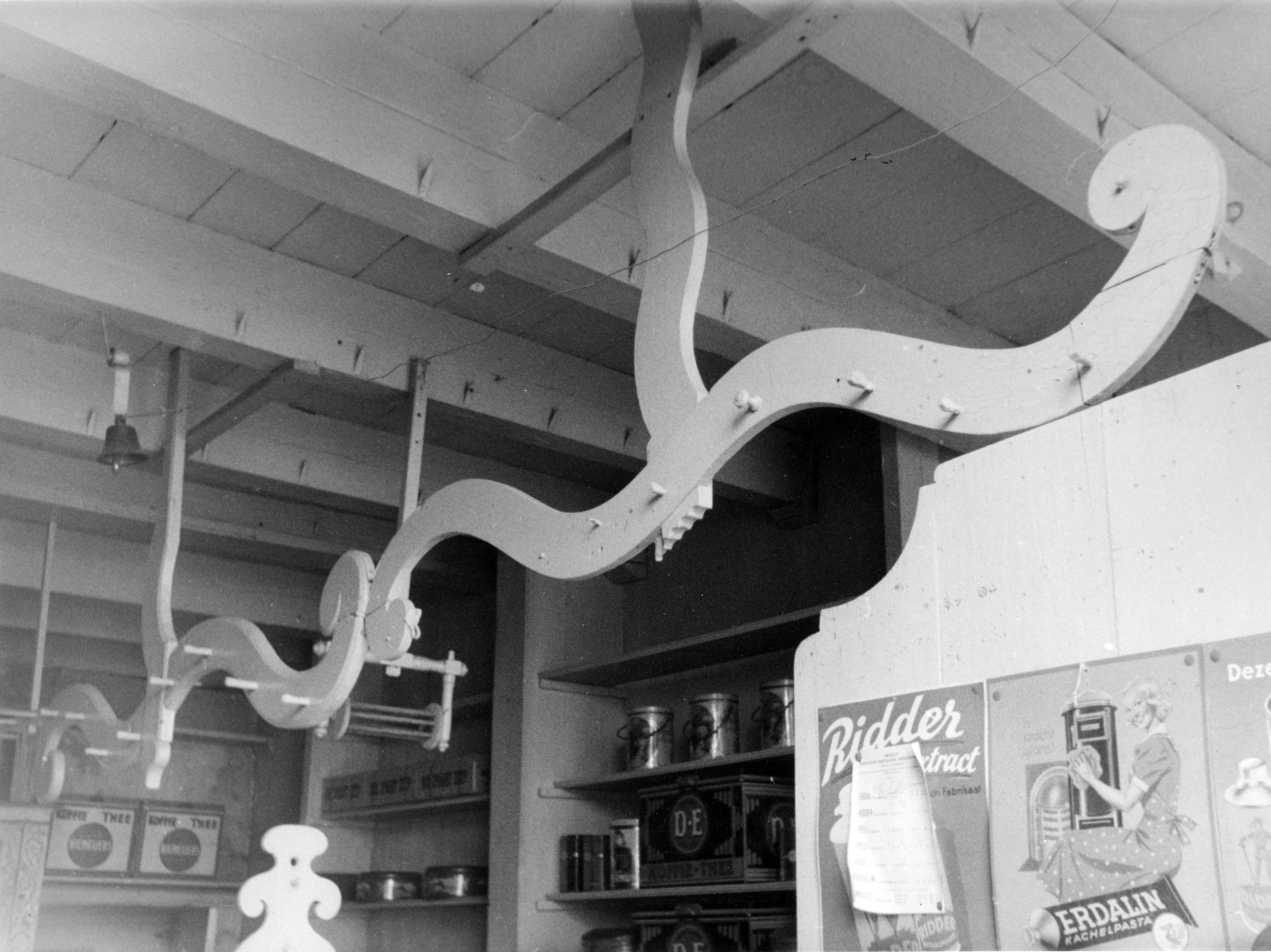 Winkelslang voor het ophangen van zakjes, in het interieur van een winkel in Hindeloopen.