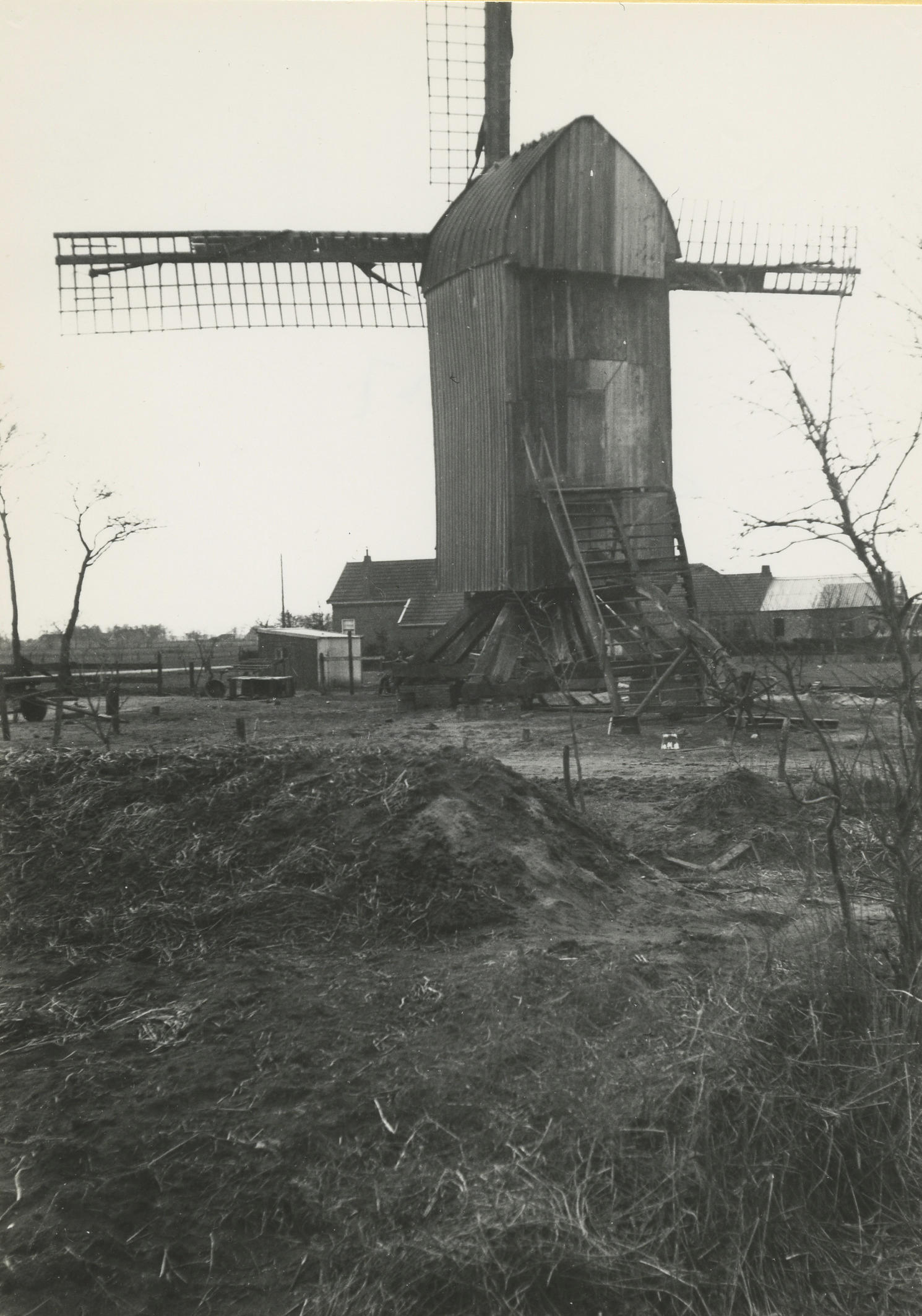 Standerdmolen in Mussel. Deze molen is in 1766 te Eerste Exloërmond gebouwd en in 1869 overgeplaatst naar Mussel. In 1940 werden de wieken verwijderd. De molen is in 1943 afgebroken en aangekocht door de gemeente Haren. De onderdelen werden opgeslagen. Omstreeks 1948 zijn de onderdelen door het Nederlands Openluchtmuseum aangekocht. Diverse onderdelen werden hergebruikt bij ...