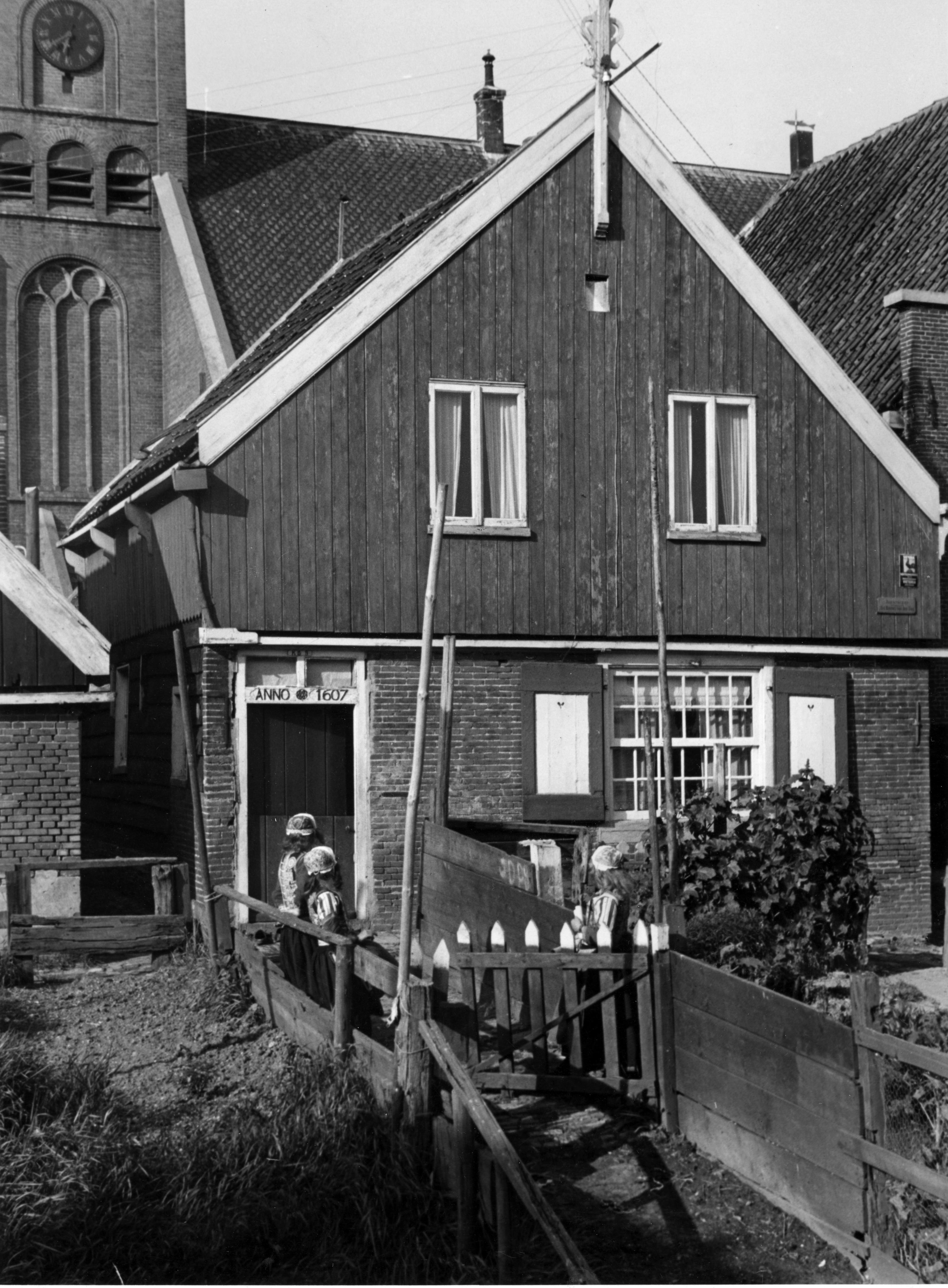 Visserswoning op Marken. In het deurkalf is een zogenoemde toverknoop en het jaartal 'ANNO 1607' gesneden.
