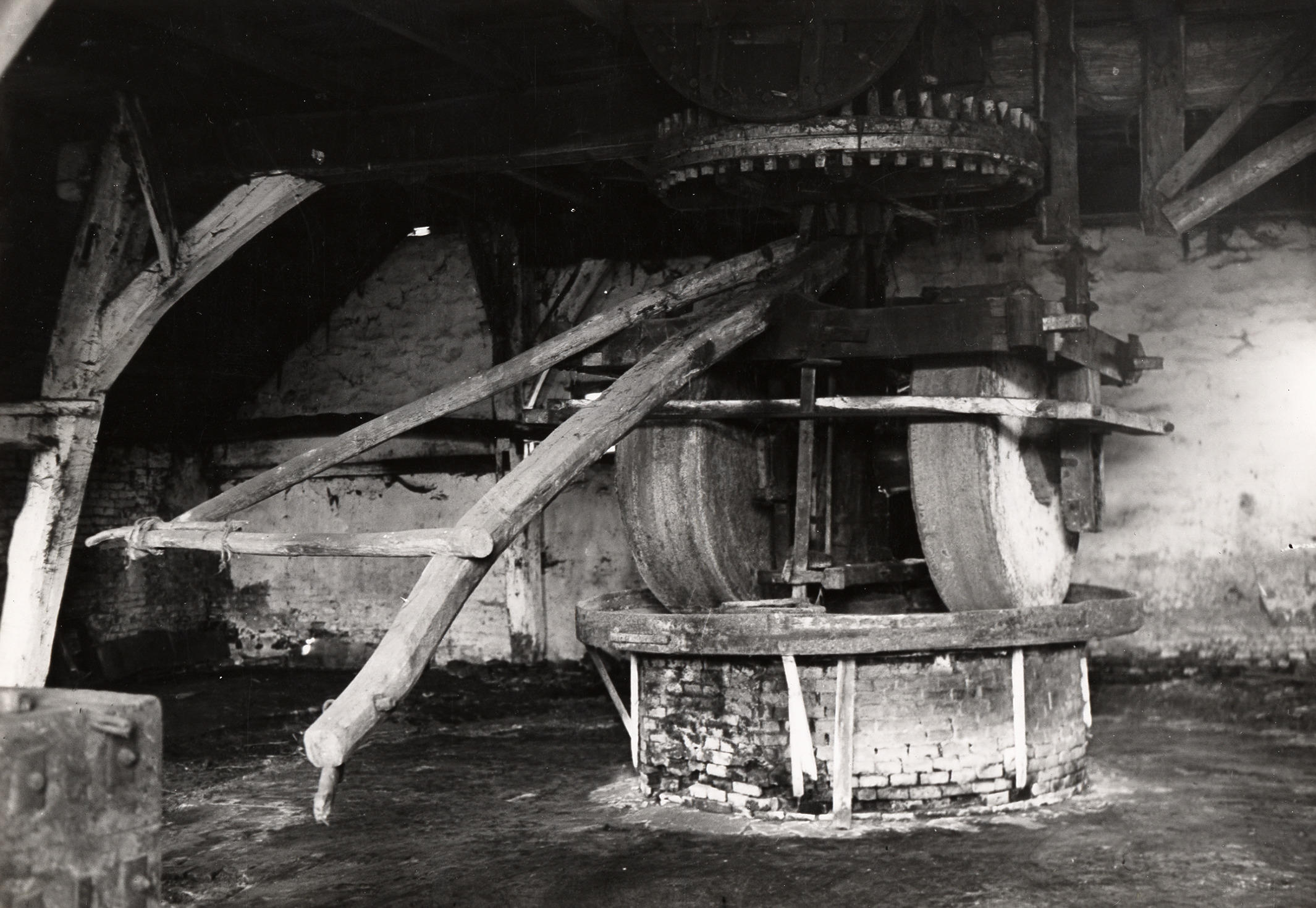 De kollergang van de rosoliemolen in Zieuwent. Deze oliemolen is in 1931 overgeplaatst naar het Nederlands Openluchtmuseum in Arnhem. Het pand stond op erve 'Groot Tilder' in Zieuwent.