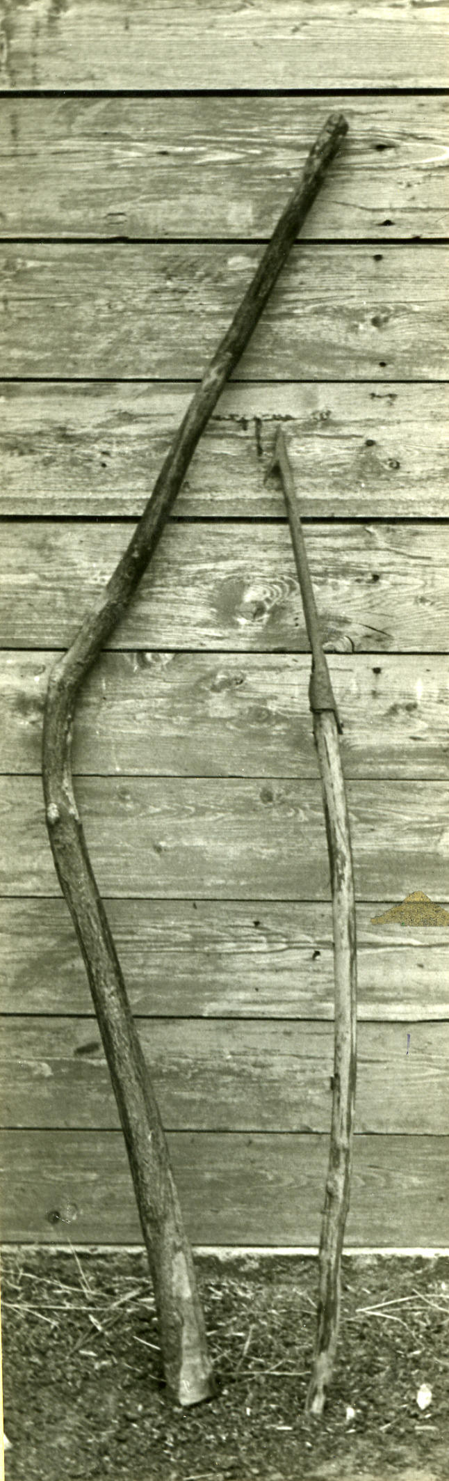 Houten dorsstok en een zogenoemde hooihaak, eigendom van een man in Staphorst.