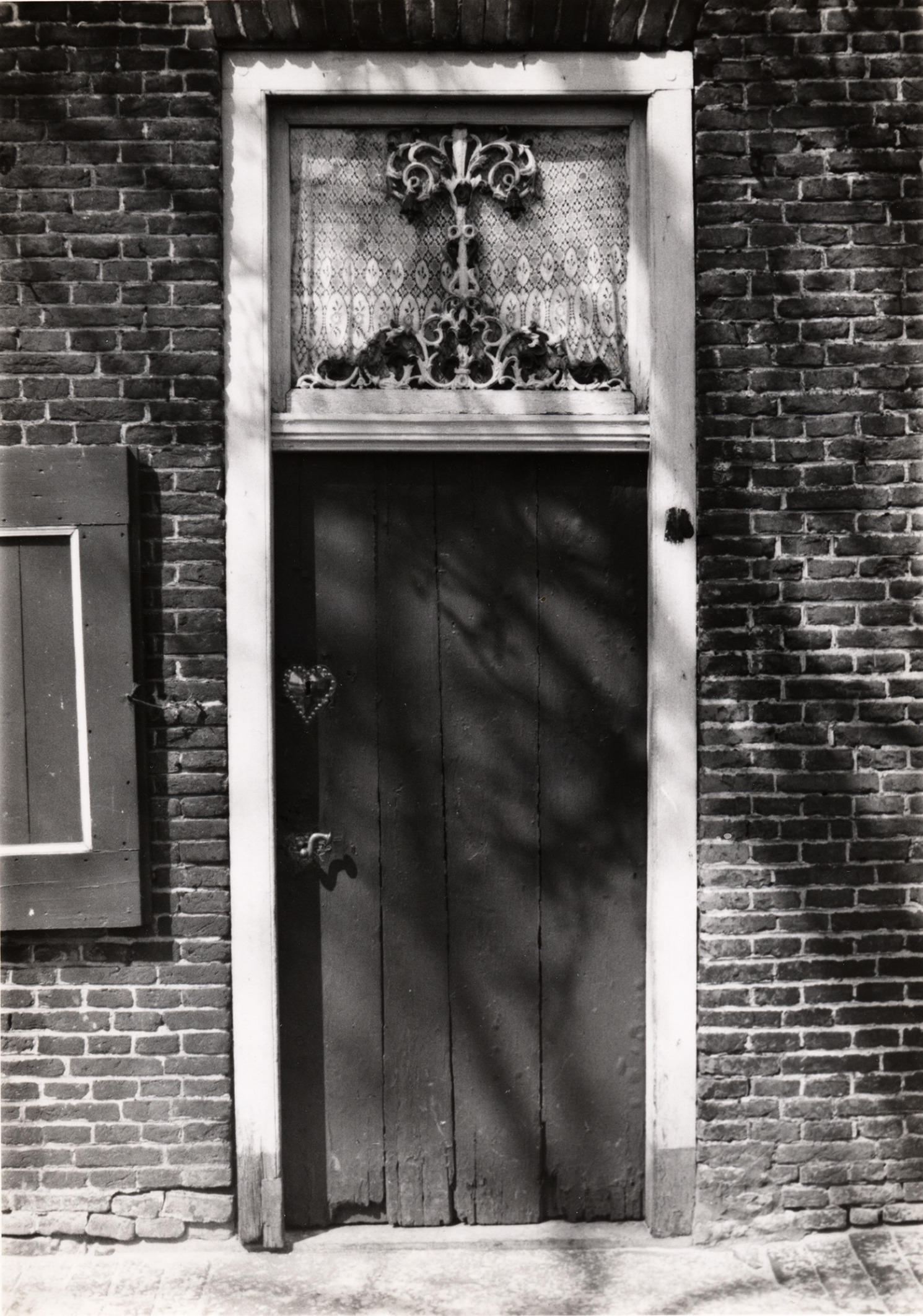 Deur met een bovenlicht in Staphorst. In het bovenlicht is een meerkleurig gietijzeren levensboom geplaatst. Op de deur zitten een messing sleutel- en klinkplaat. Het huisnummer op de rechterdeurpost is met zwarte verf onherkenbaar gemaakt. In één nacht werden alle huisnummers in Staphorst en Rouveen door het verzet met verf overschilderd. Deze woning is op ...