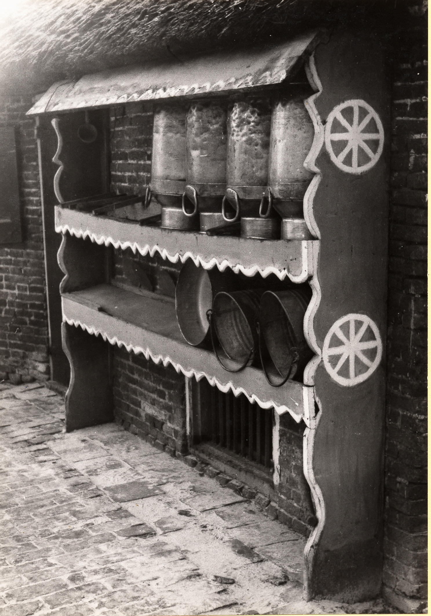 Melkbussenrek, Staphorst, 1944 (zwart-wit foto)