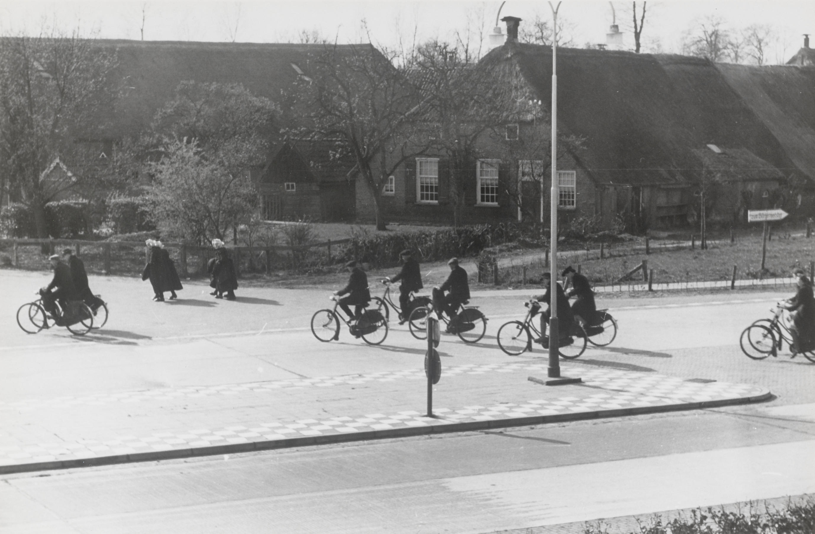 Kerkgangers ter hoogte van 'De Hoek' in Staphorst.