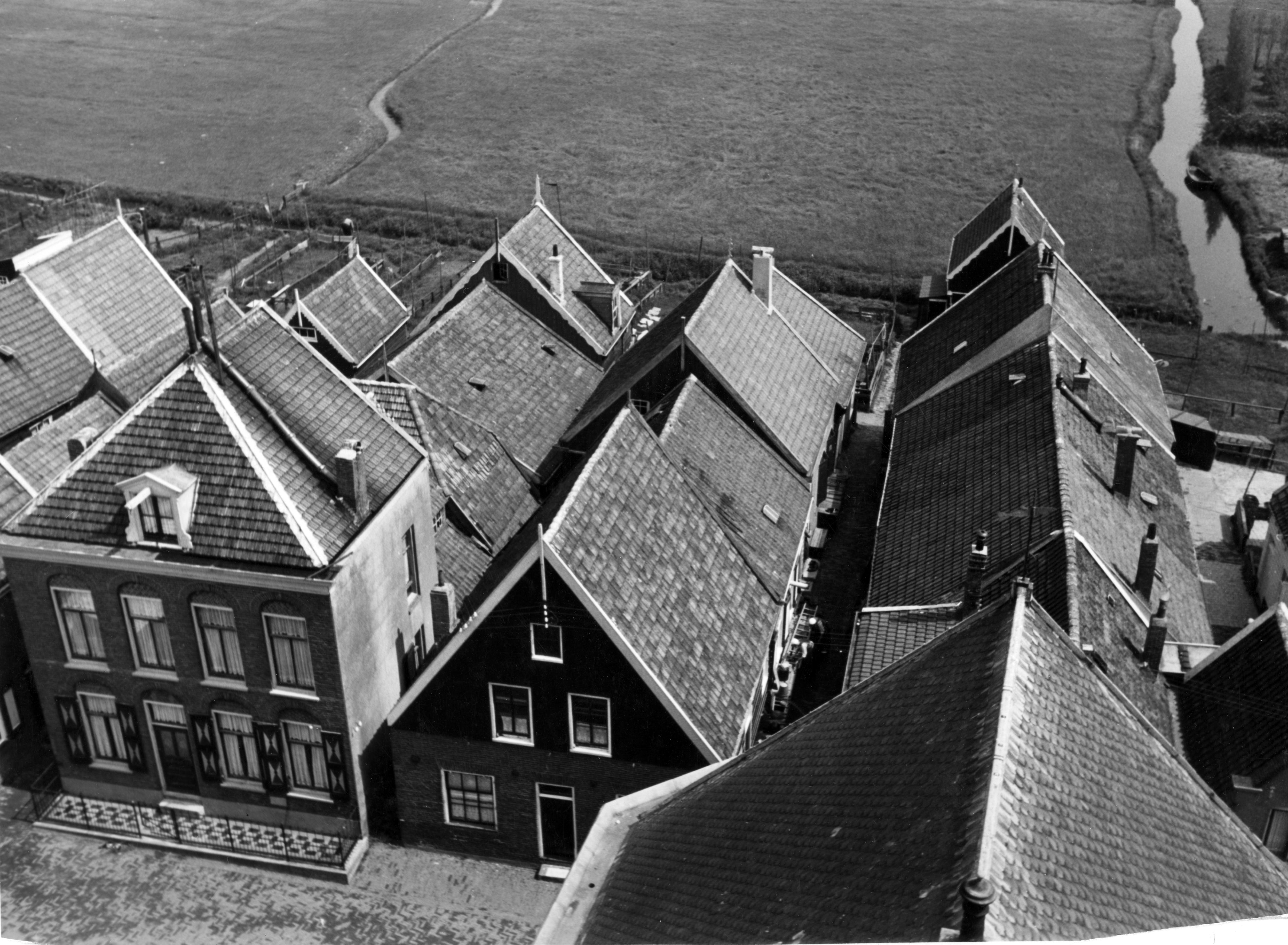 Panorama van de Kerkbuurt vanaf de kerktoren van de Nederlandse hervormde kerk. Links is de gereformeerde pastorie te zien.