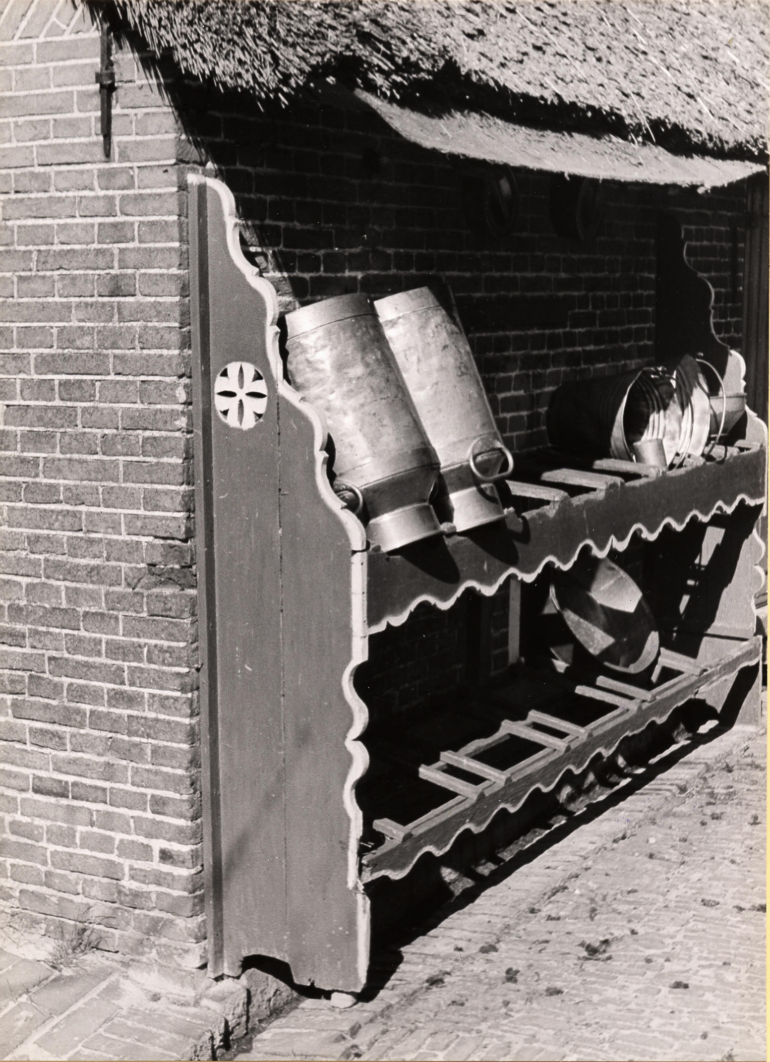 Melkbussenrek, Staphorst, 1944 (zwart-wit foto)