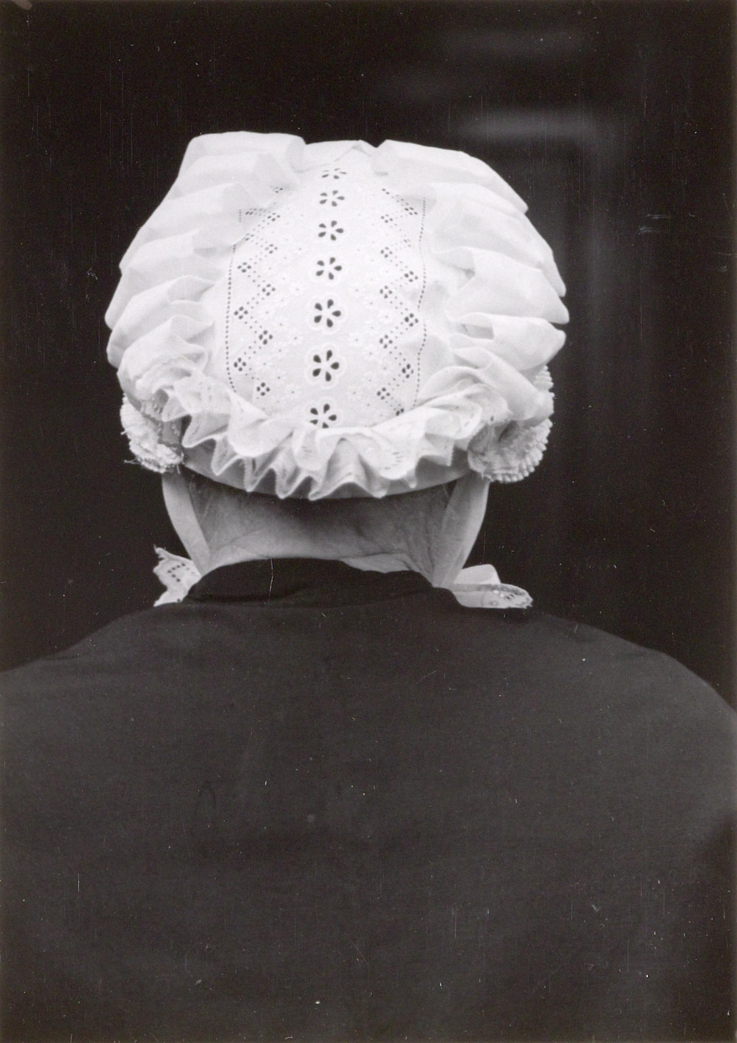 Vrouw uit Oirschot in Noord-Brabantse streekdracht. Op haar hoofd draagt ze een zogenoemd kornetje (kornetmuts) van broderie. Deze muts werd onder meer gedragen tijdens een doordeweeks kerkbezoek.