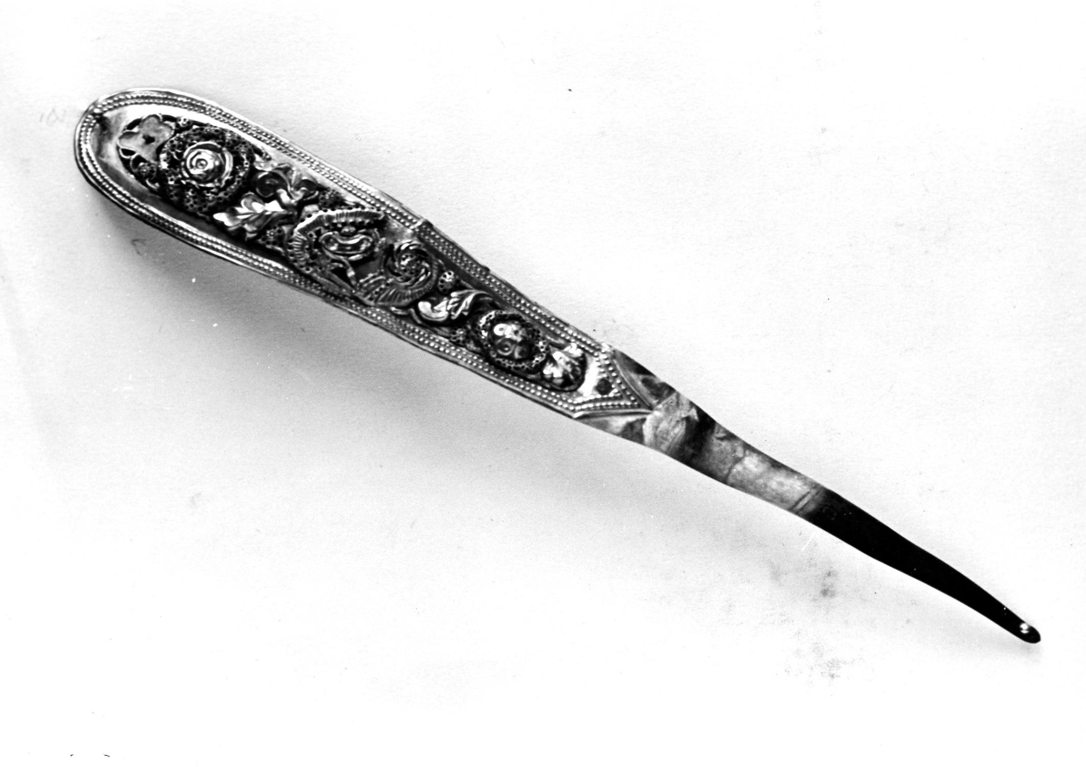 Gouden voorhoofdsnaald uit 1866, gedragen op Terschelling. De voorhoofdsnaald is eigendom van een familie in Striep.