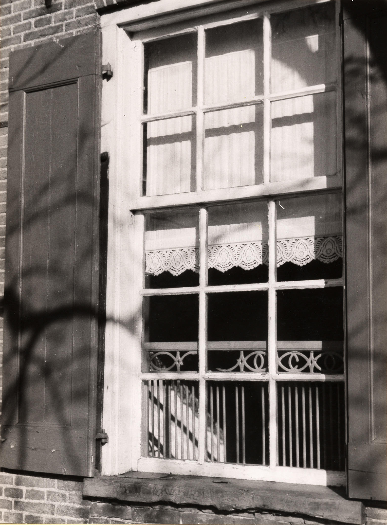 Bewerkt houten raamhor, Rouveen, 1944 (zwart-wit foto)