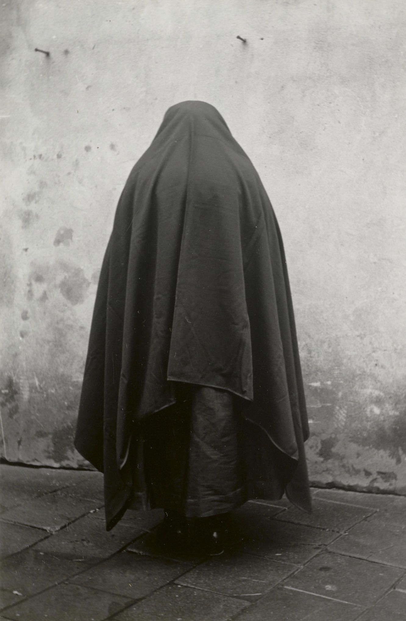 Vrouw in rouwdracht uit Stein, 1950 (zwart-wit foto)