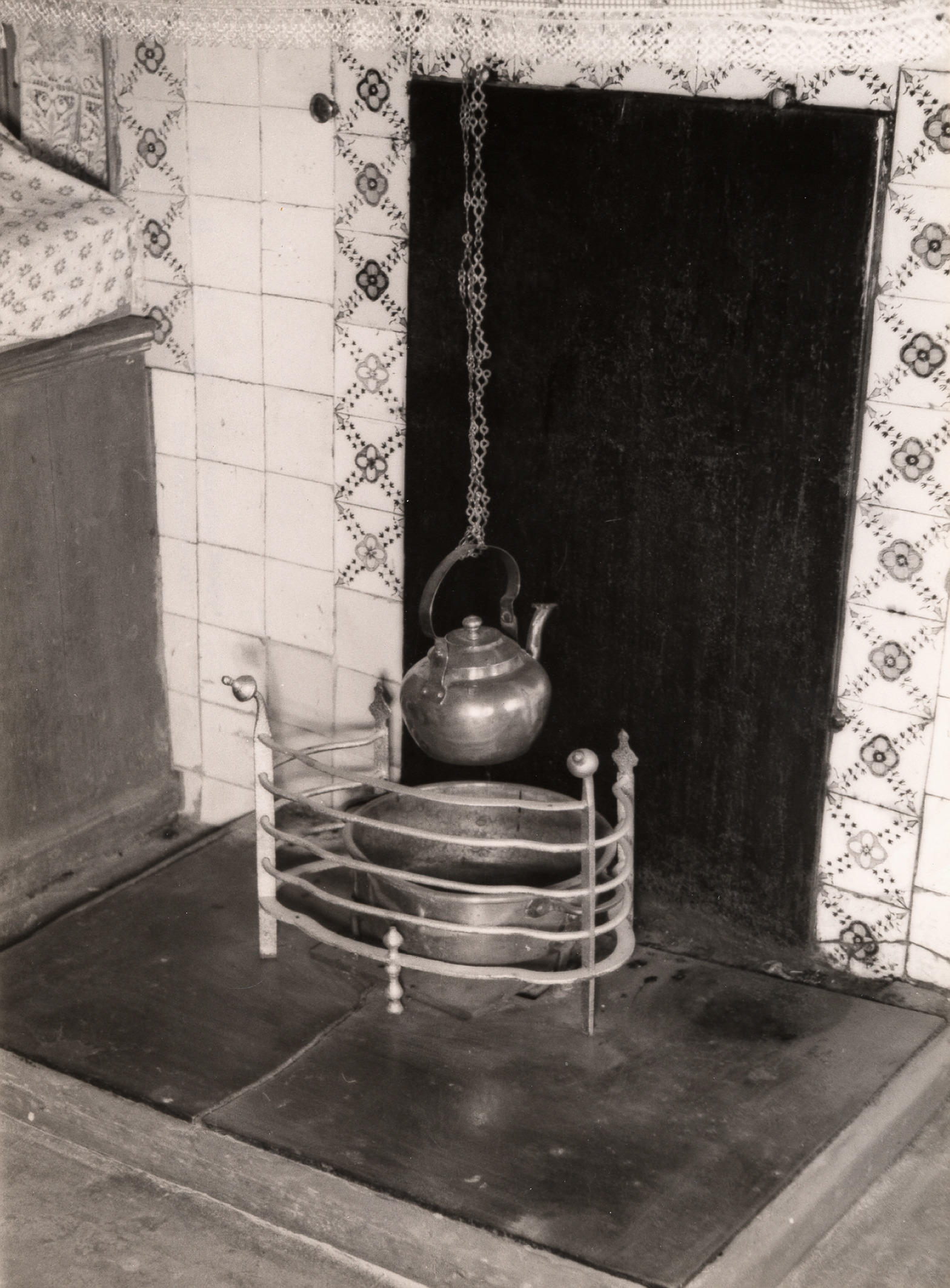 Vuurplaats voor open vuur, Staphorst, 1944 (zwart-wit foto)