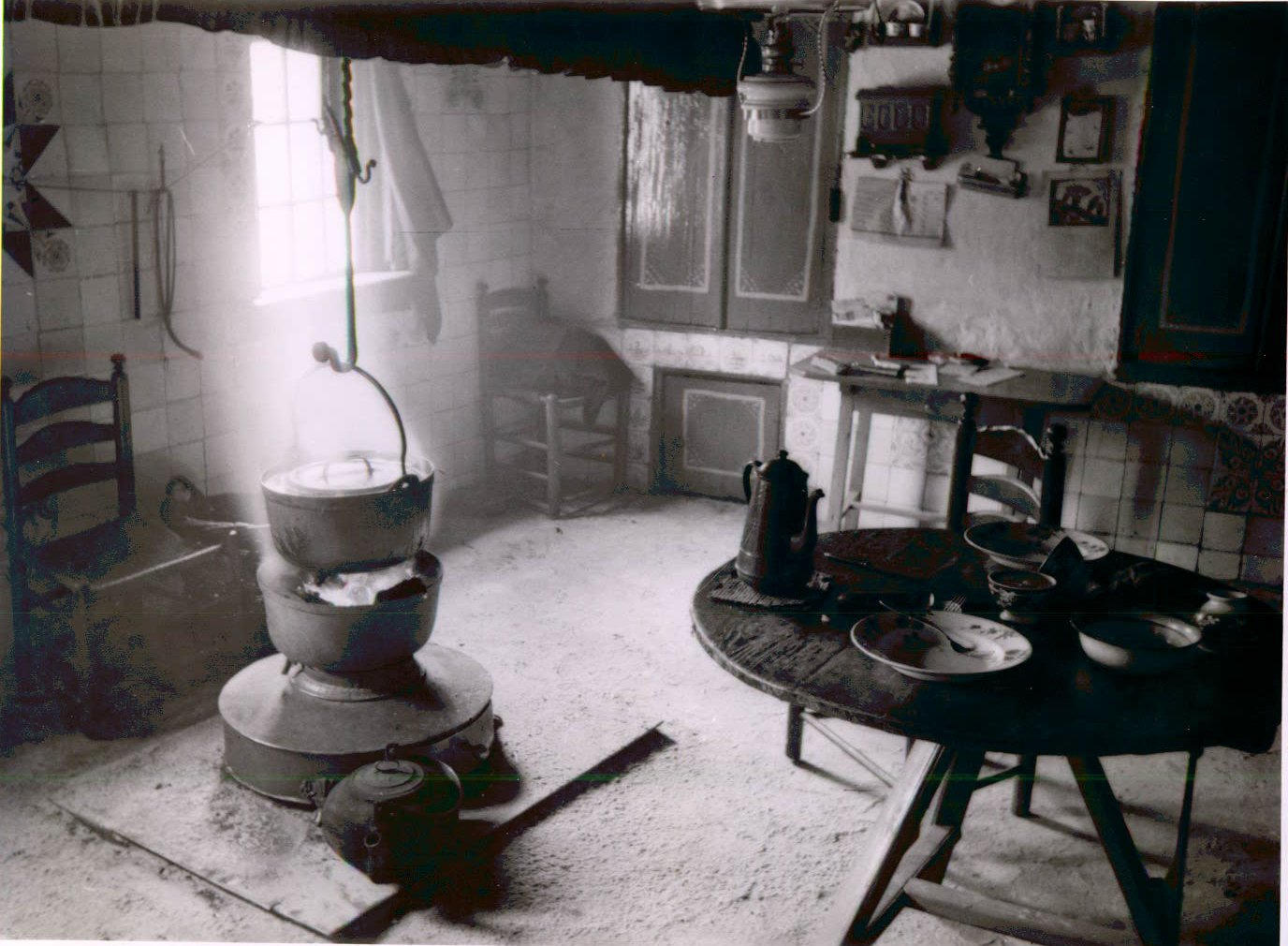 Interieur met vuurpot, Staphorst, 1944 (zwart-wit foto)