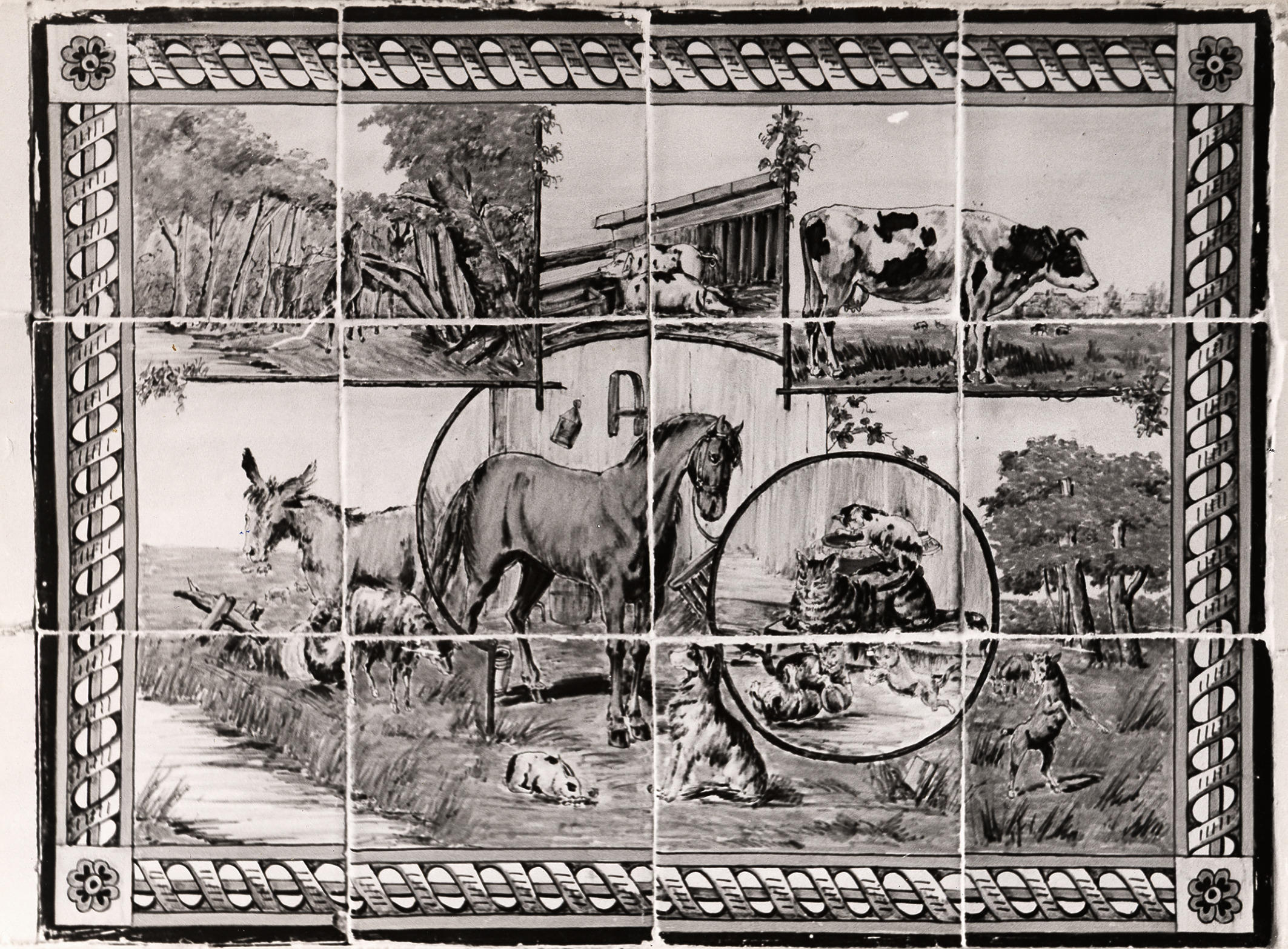 Tegeltableau met dieren, Staphorst, 1944 (zwart-wit foto)