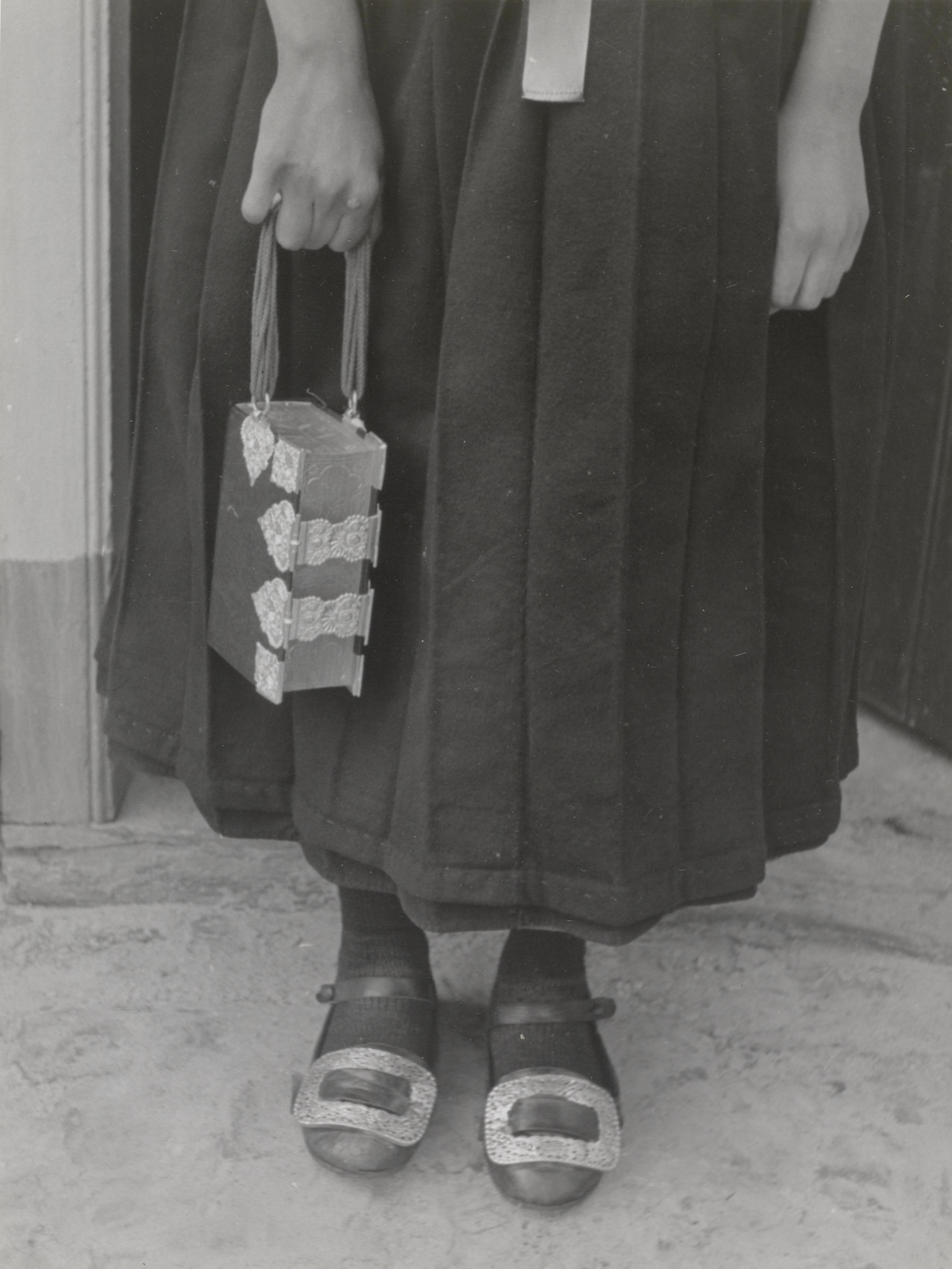 Kerkbijbel en kerkschoenen, Rouveen, 1944 (zwart-wit foto)