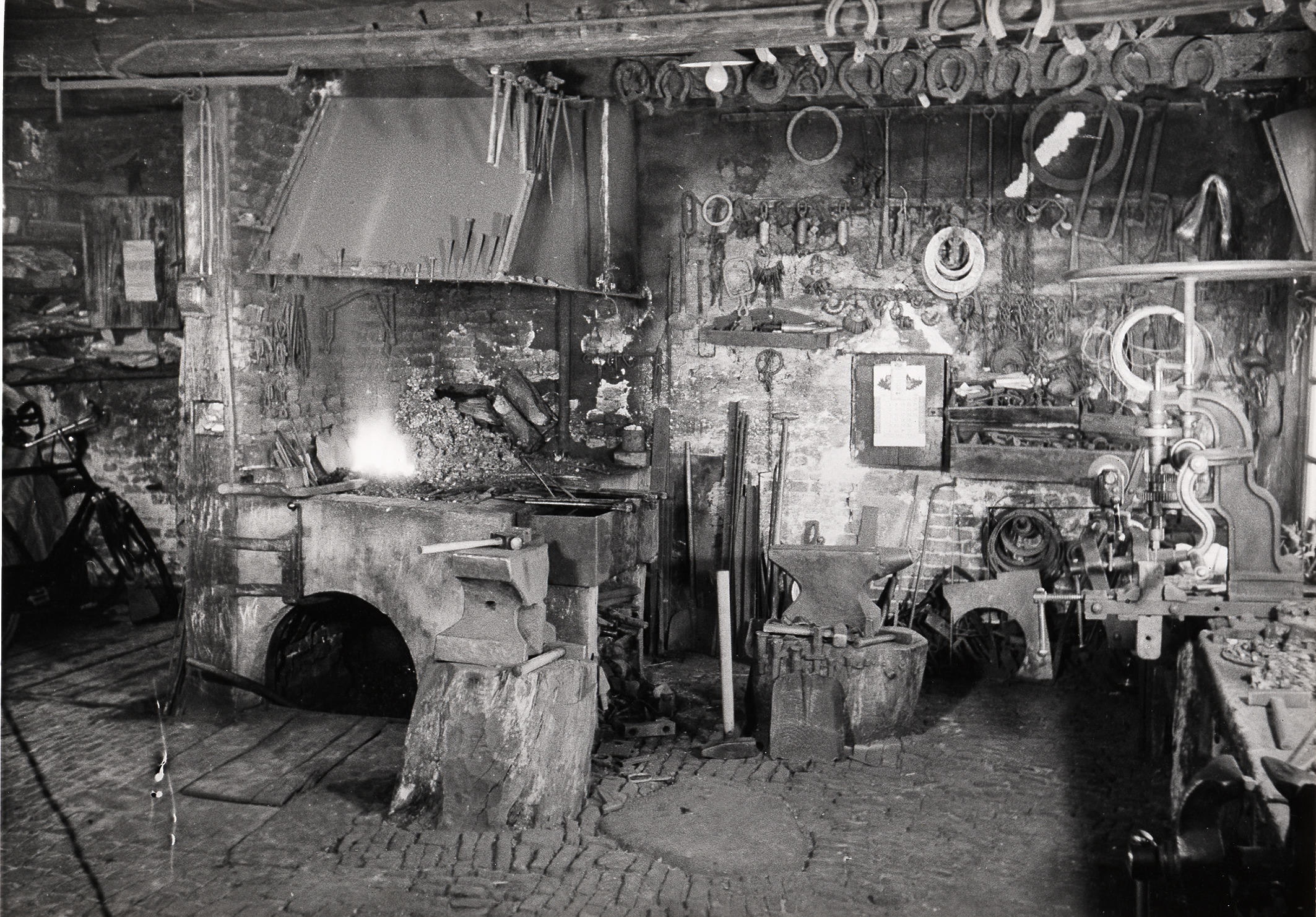 Interieur van de smederij, Rouveen, 1944 (zwart-wit foto)