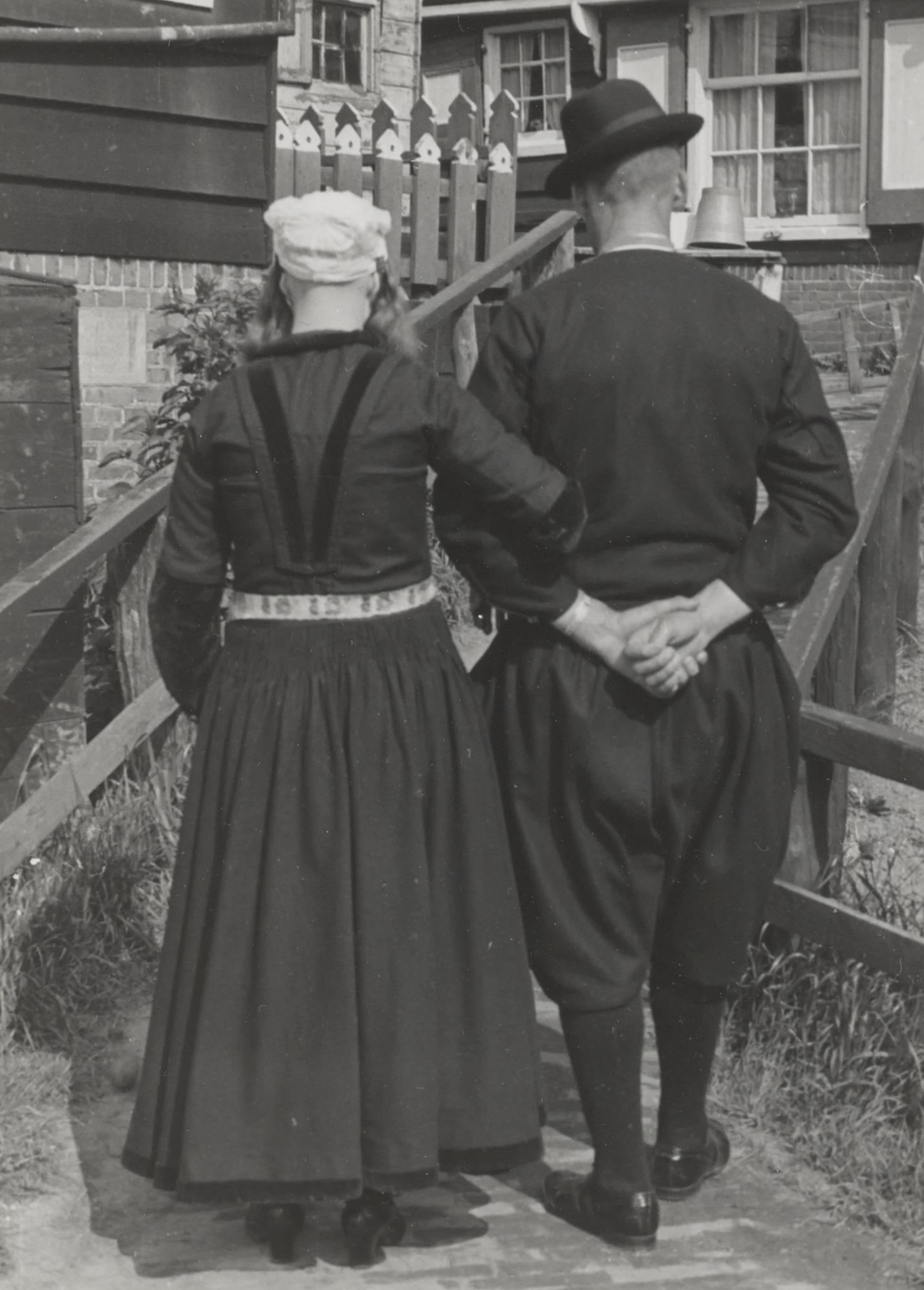 Bruidspaar in Marker streekdracht, 1944 (zwart-wit foto)