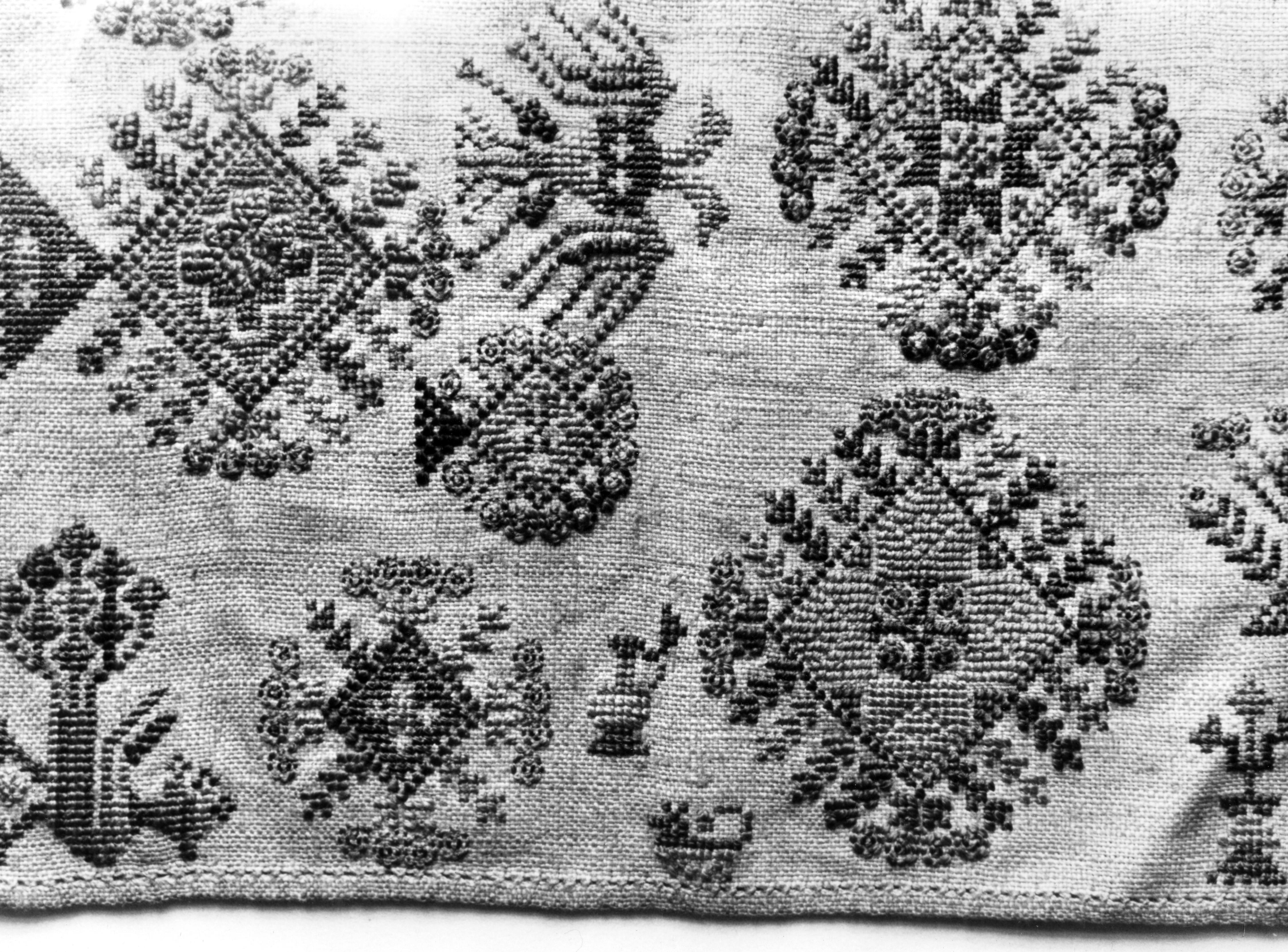 Detail van een merklap, Marken, 1943 (zwart-wit foto)