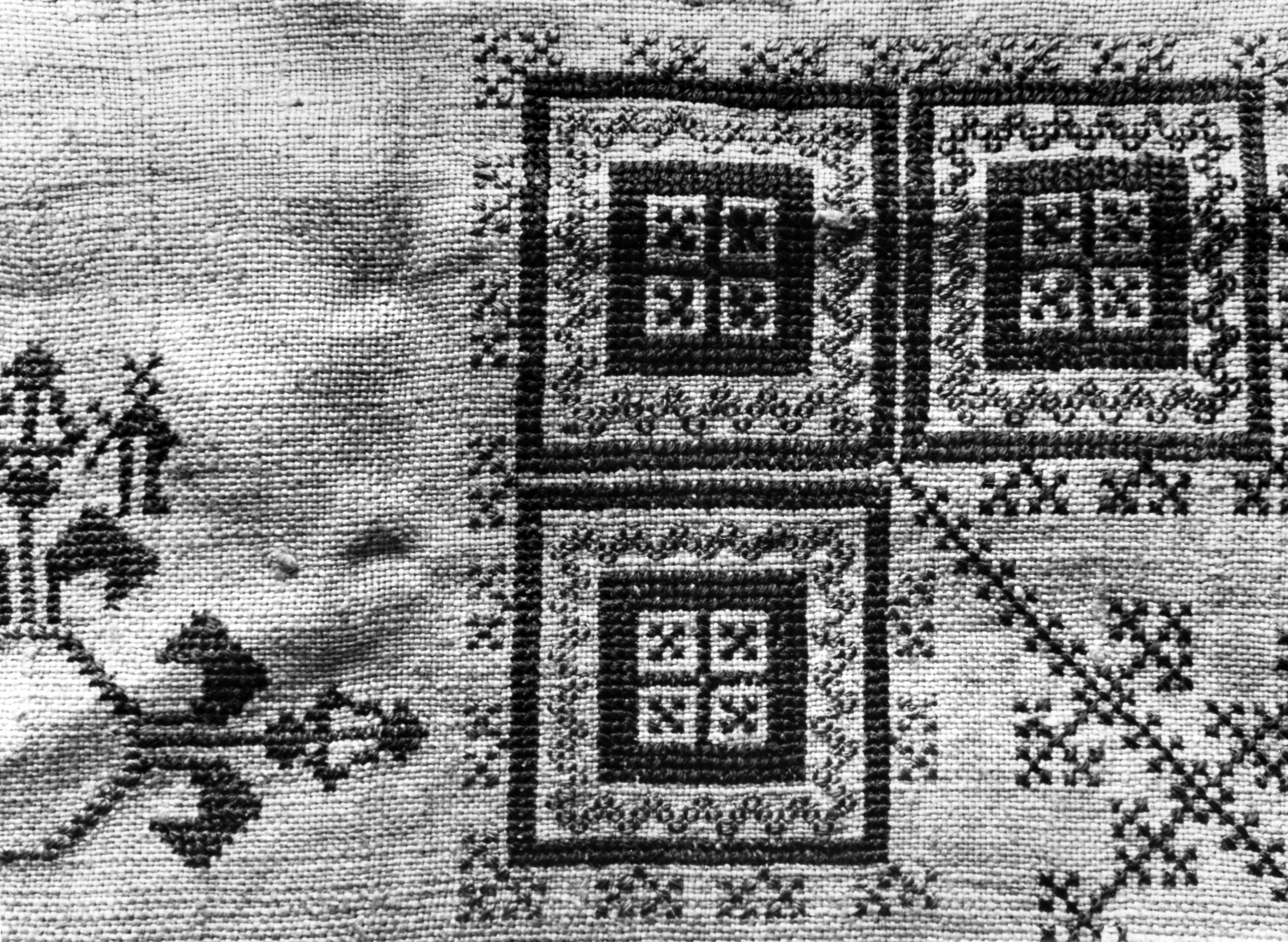 Detail van een merklap, Marken, 1943 (zwart-wit foto)