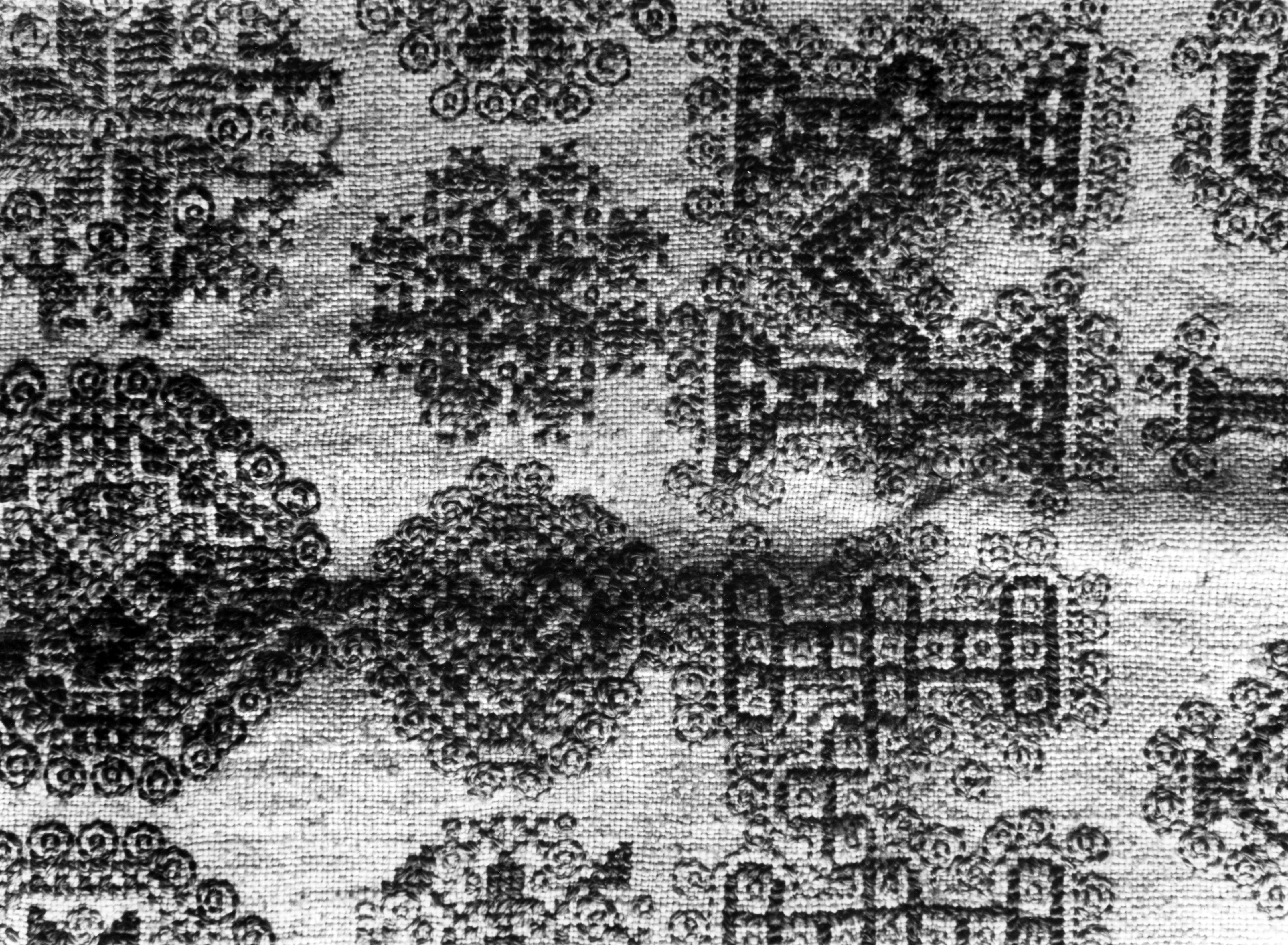 Detail van een merklap, Marken, 1943 (zwart-wit foto)