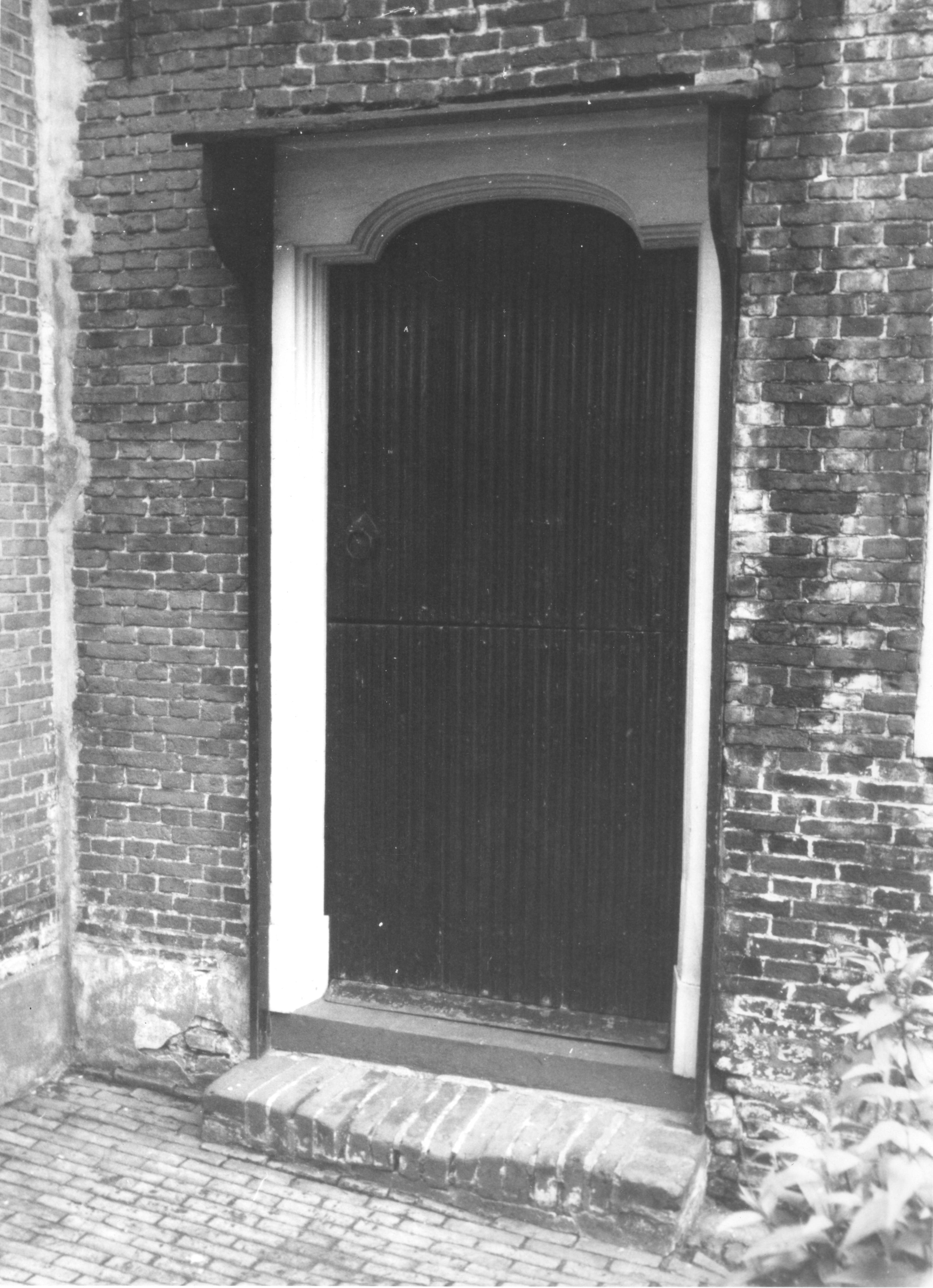 Deur van de doopgezinde kerk, Workum, 1944 (zwart-wit foto)