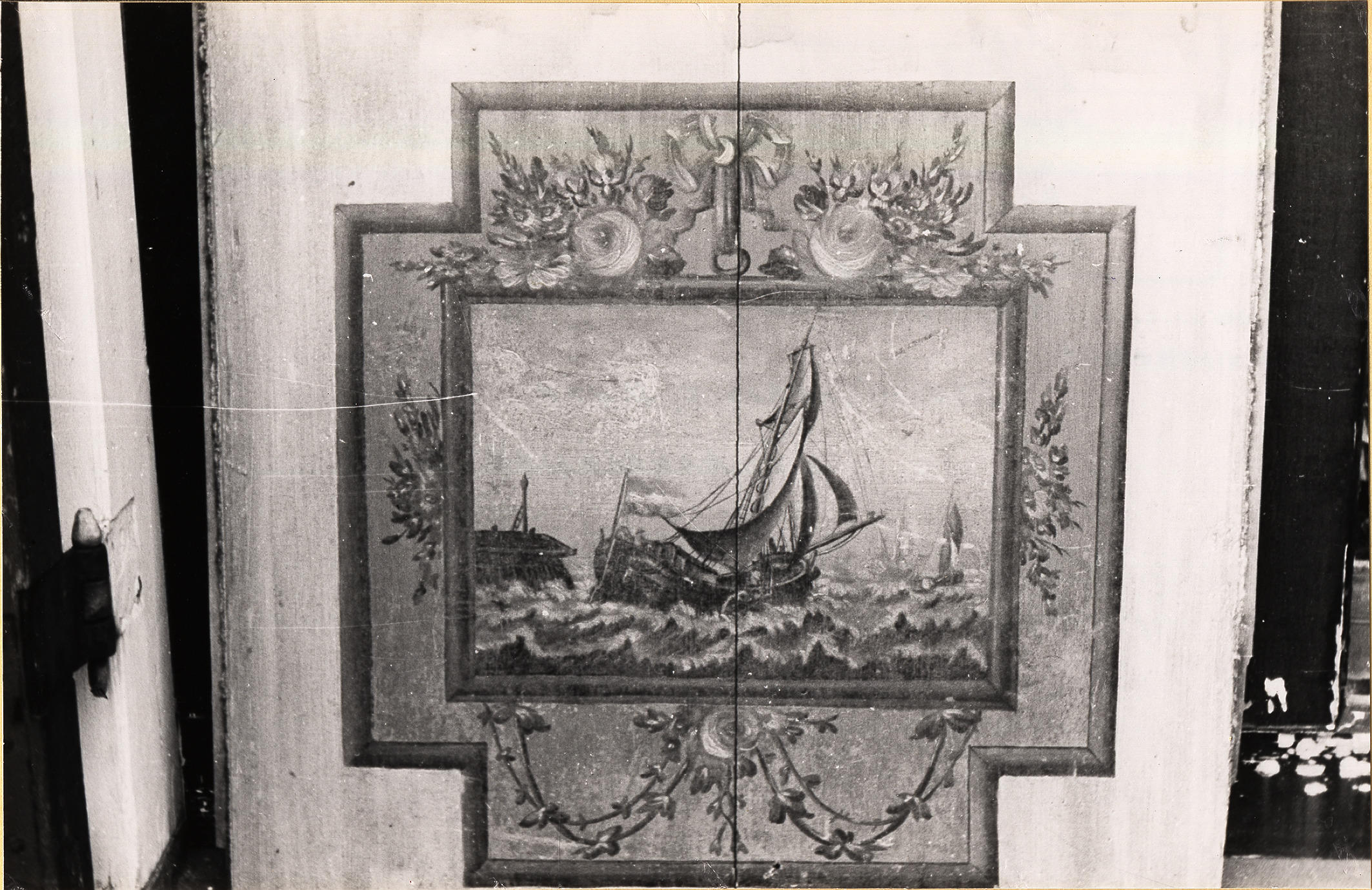 Paneel van een wandbetimmering, Workum, 1944 (zwart-wit foto)
