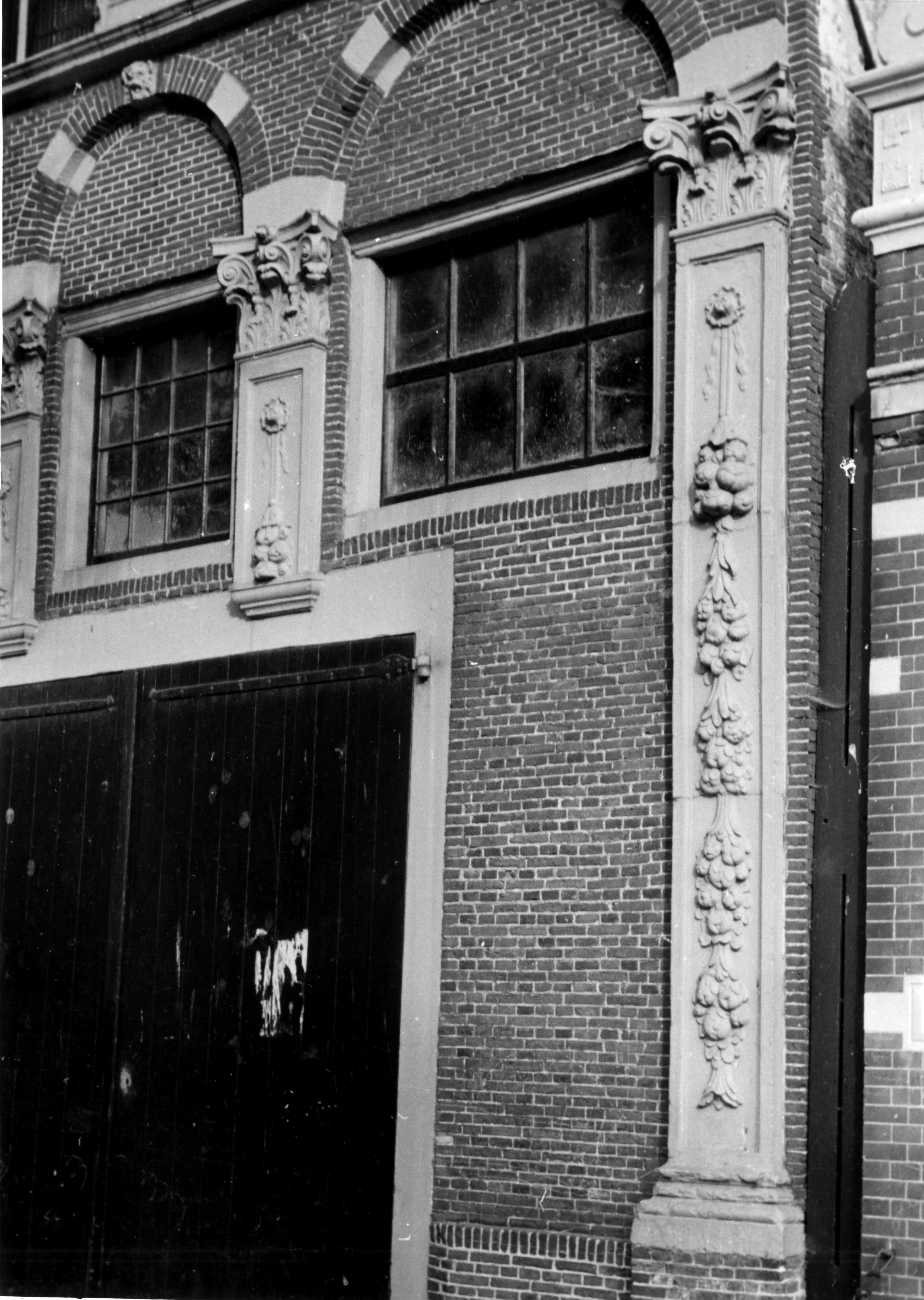 Detail van een bewerkte gevel, Workum, 1944 (zwart-wit negatief)