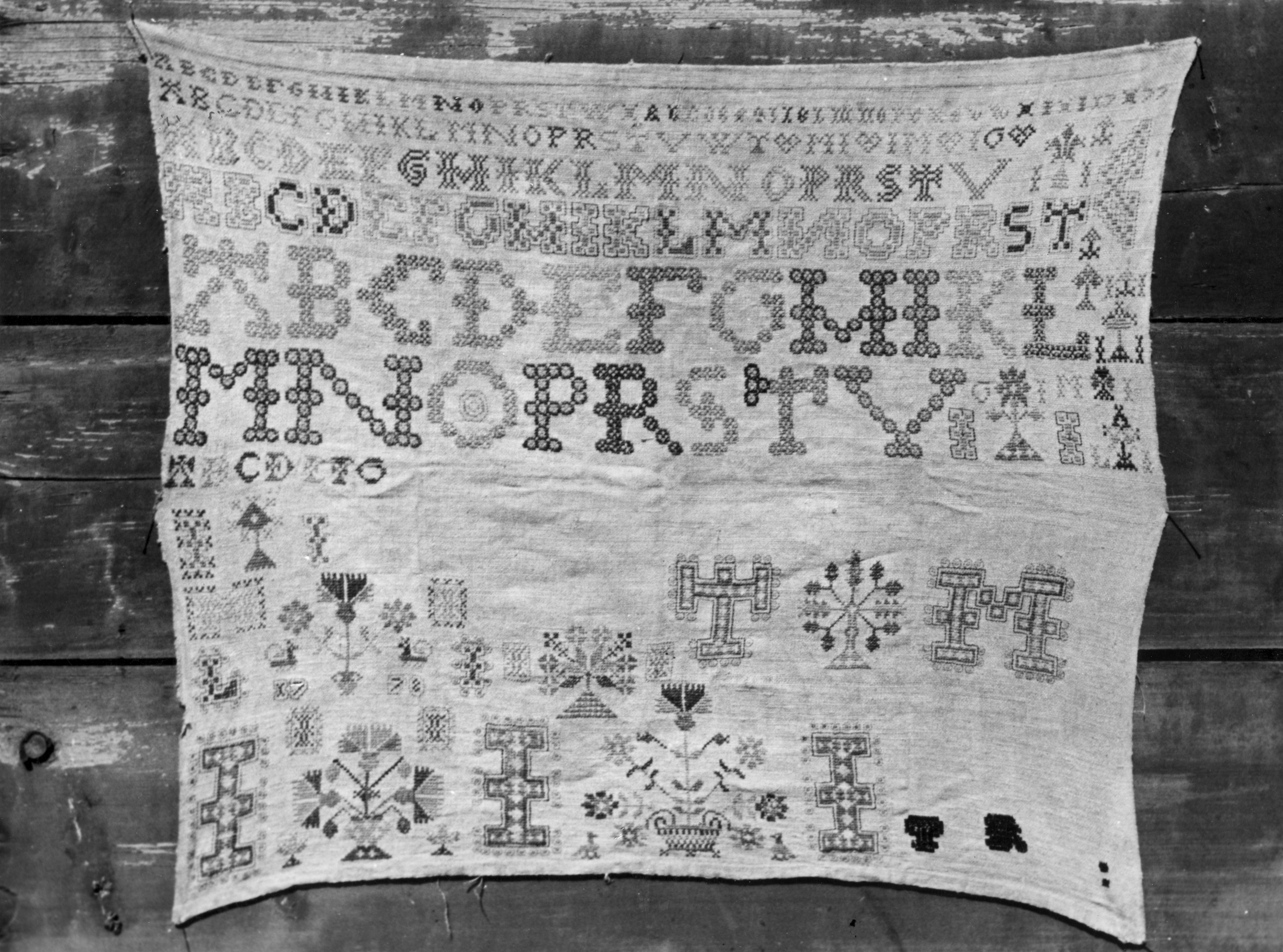 Merklap uit 1778, Workum, 1944 (zwart-wit foto)