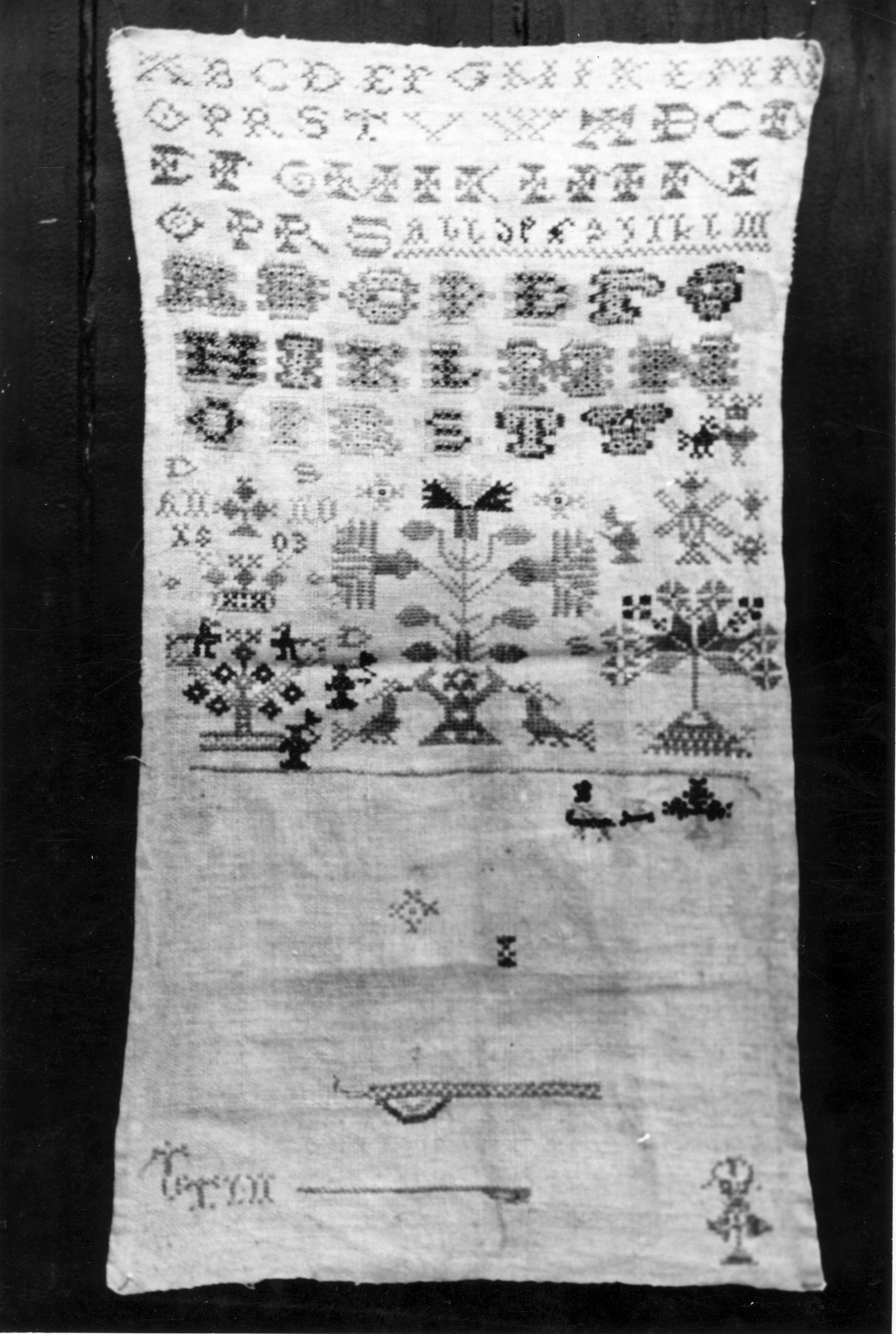 Merklap uit 1803, Workum, 1944 (zwart-wit foto)