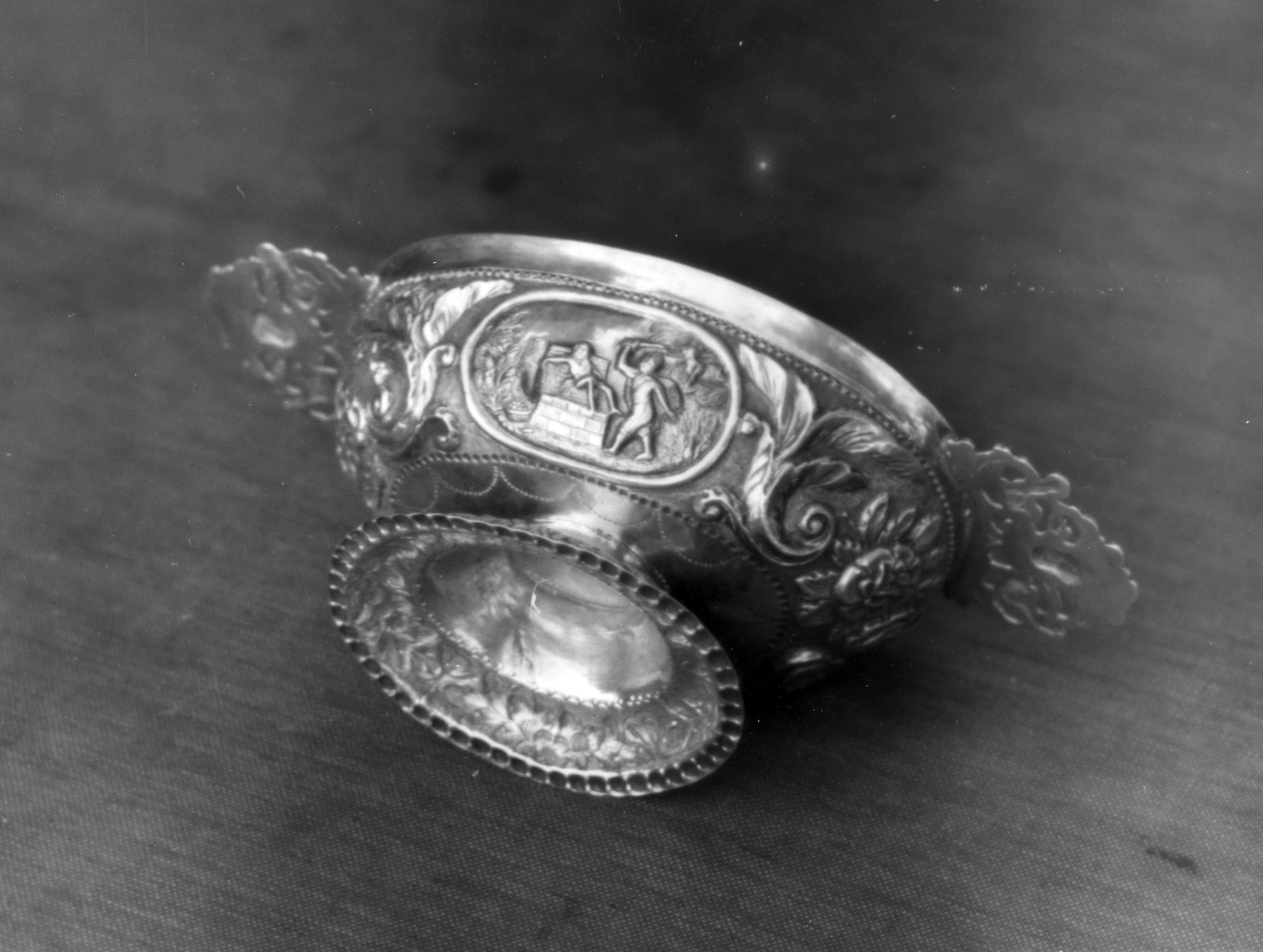 Zilveren brandewijnkom uit Molkwerum, 1944 (zwart-wit foto)
