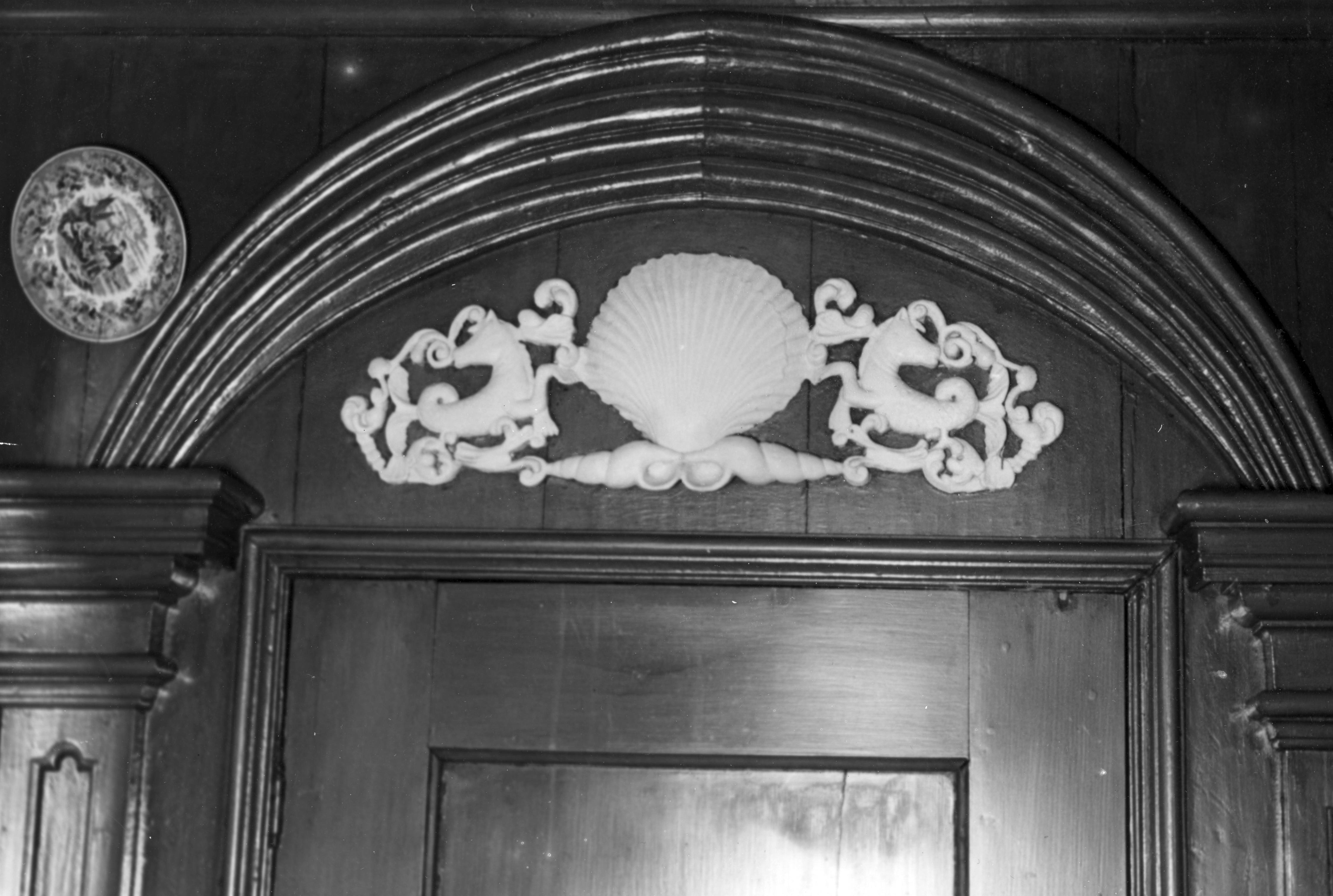 Detail van een wandbetimmering, Makkum, 1944 (zwart-wit foto)