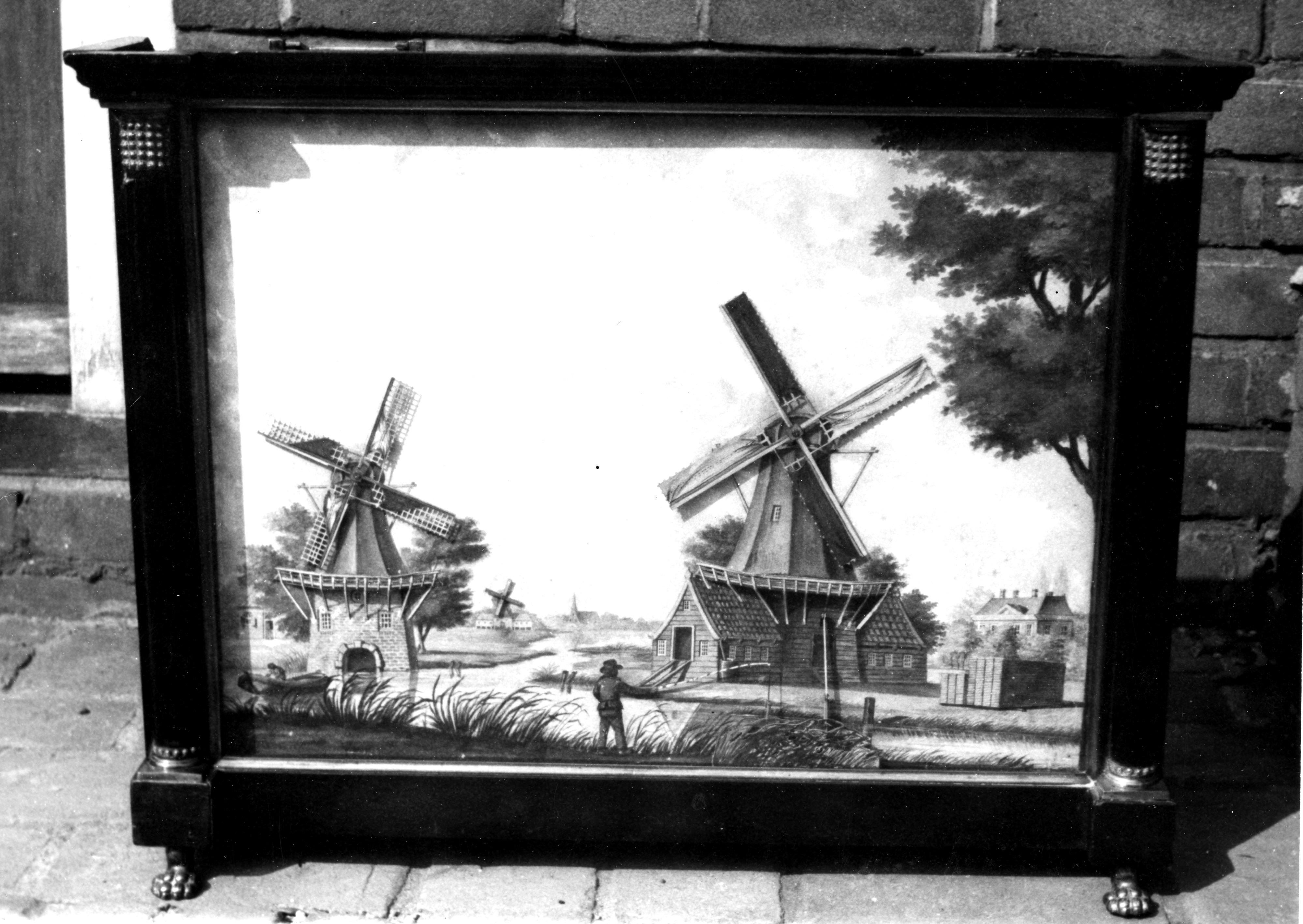 Draaidoos met bewegende onderdelen, zoals de molenwieken en de vishengel. De draaidoos is eigendom van een familie in Workum.