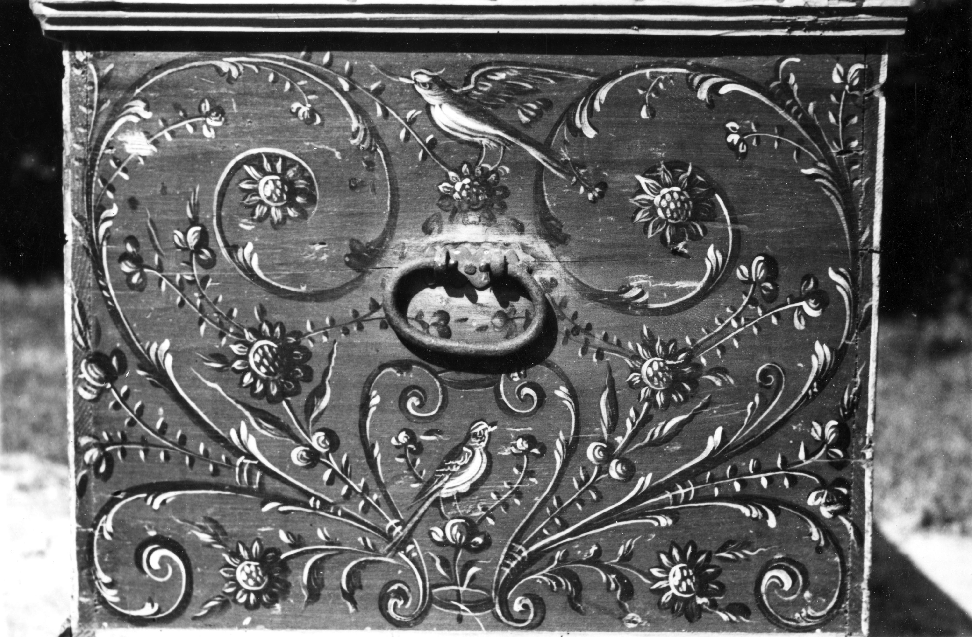 Kist met Hindelooper beschildering uit Molkwerum, 1944 (zwart-wit foto)