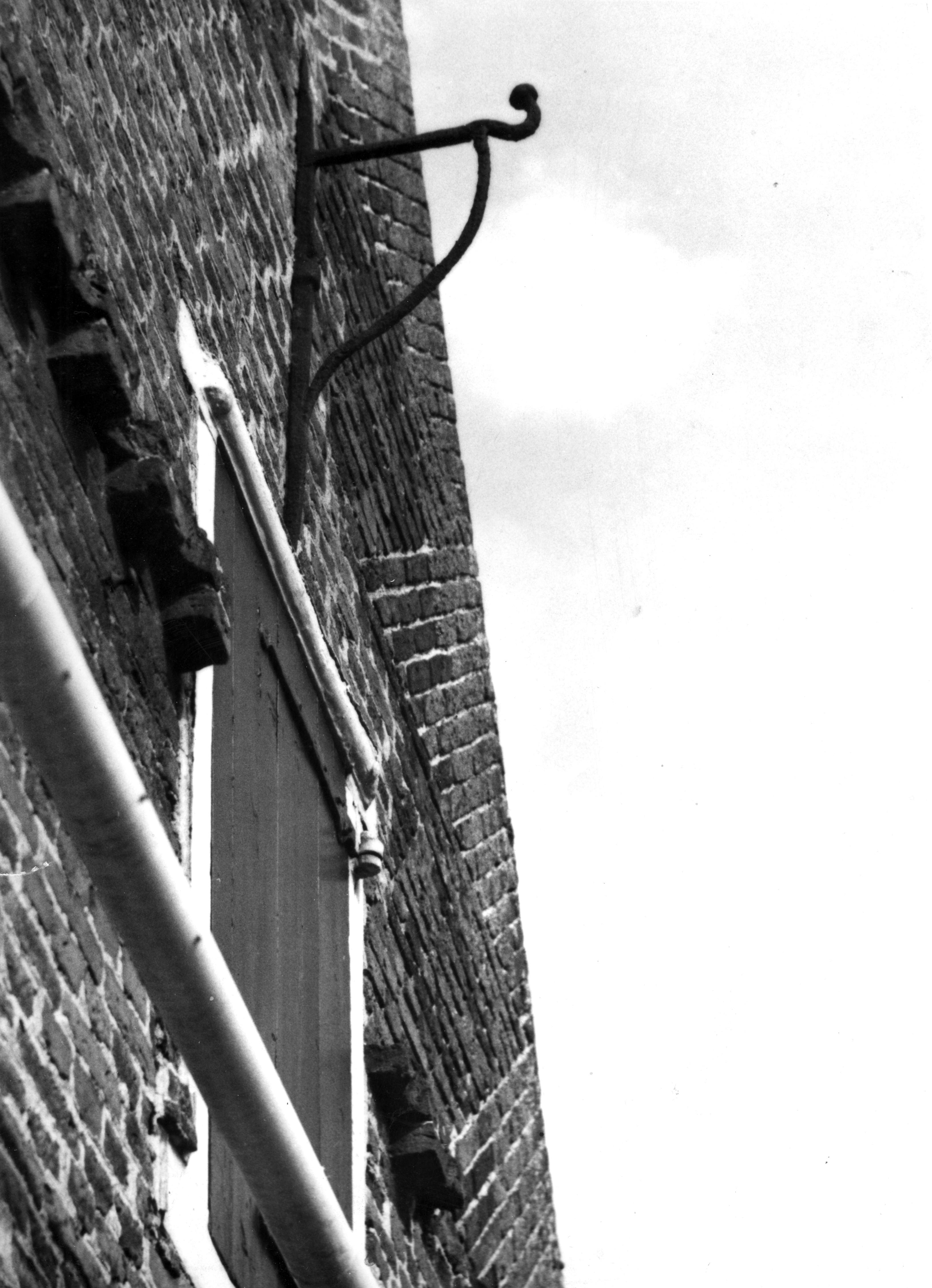 Muuranker met een haak aan een grootschippershuis in Warns. Als de schipper thuis was en nog ruimte had voor vracht hing hij een ankertje aan de haak, zodat voorbijgangers dit konden zien.