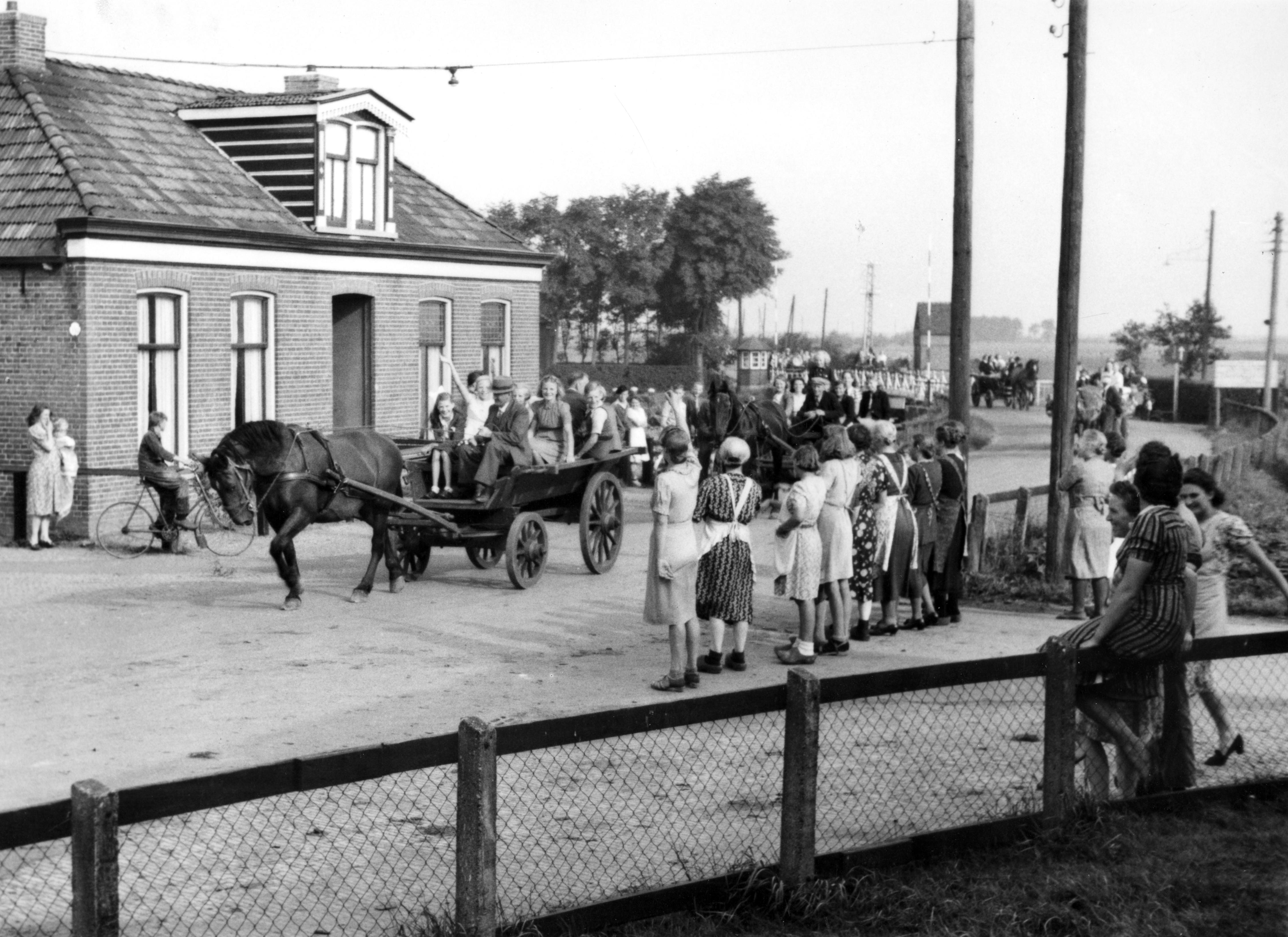 Optocht die door Warns trekt met versierde wagens uit Molkwerum.