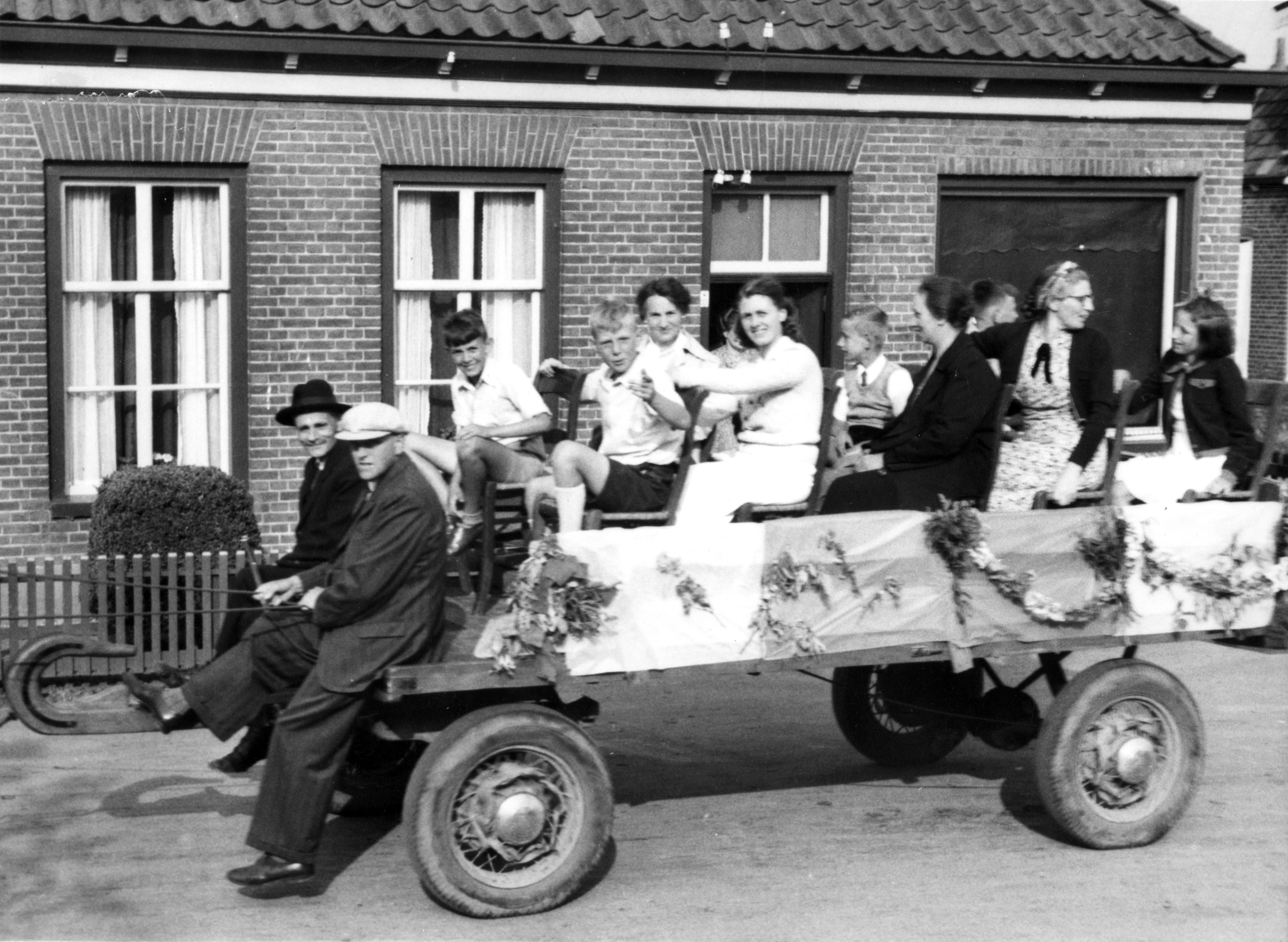 Optocht die door Warns trekt met versierde wagens uit Molkwerum.