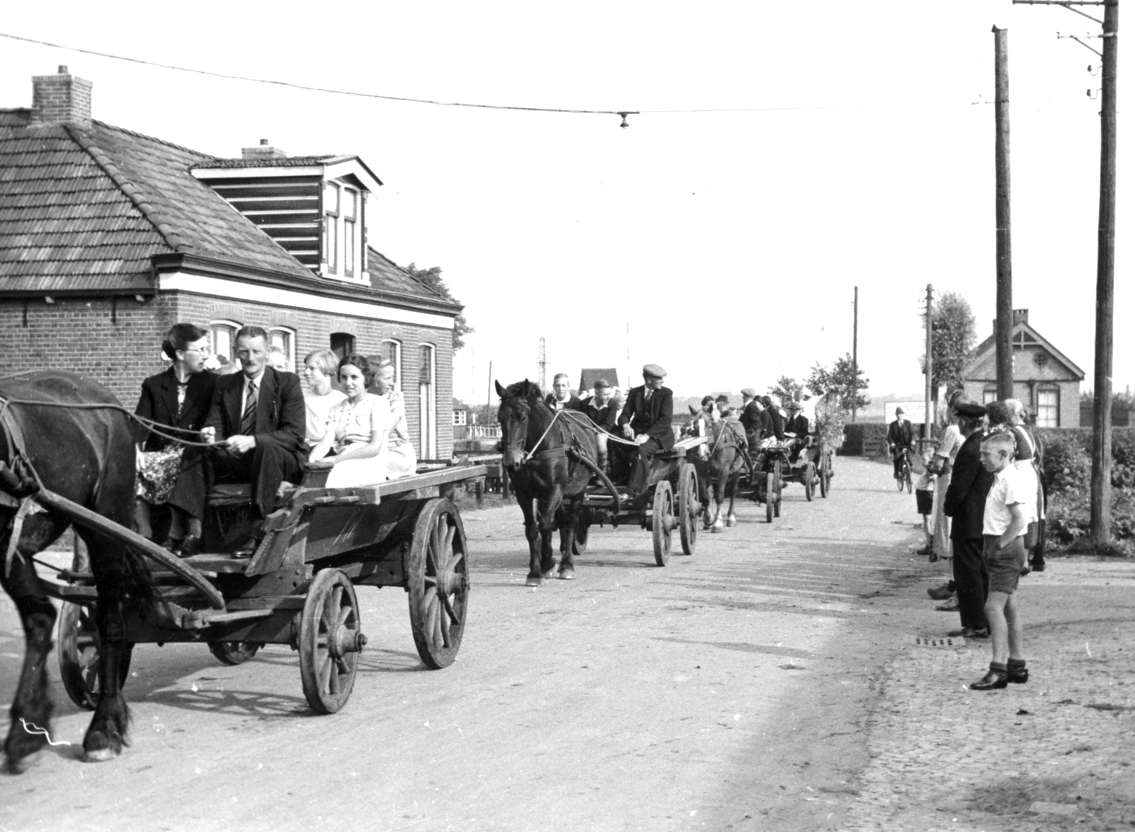 Optocht die door Warns trekt met versierde wagens uit Molkwerum.