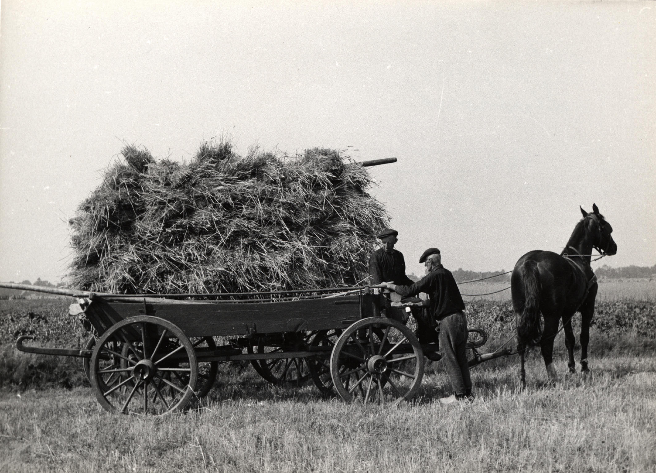 Binnenhalen van rogge, Staphorst, 1944 (zwart-wit foto)