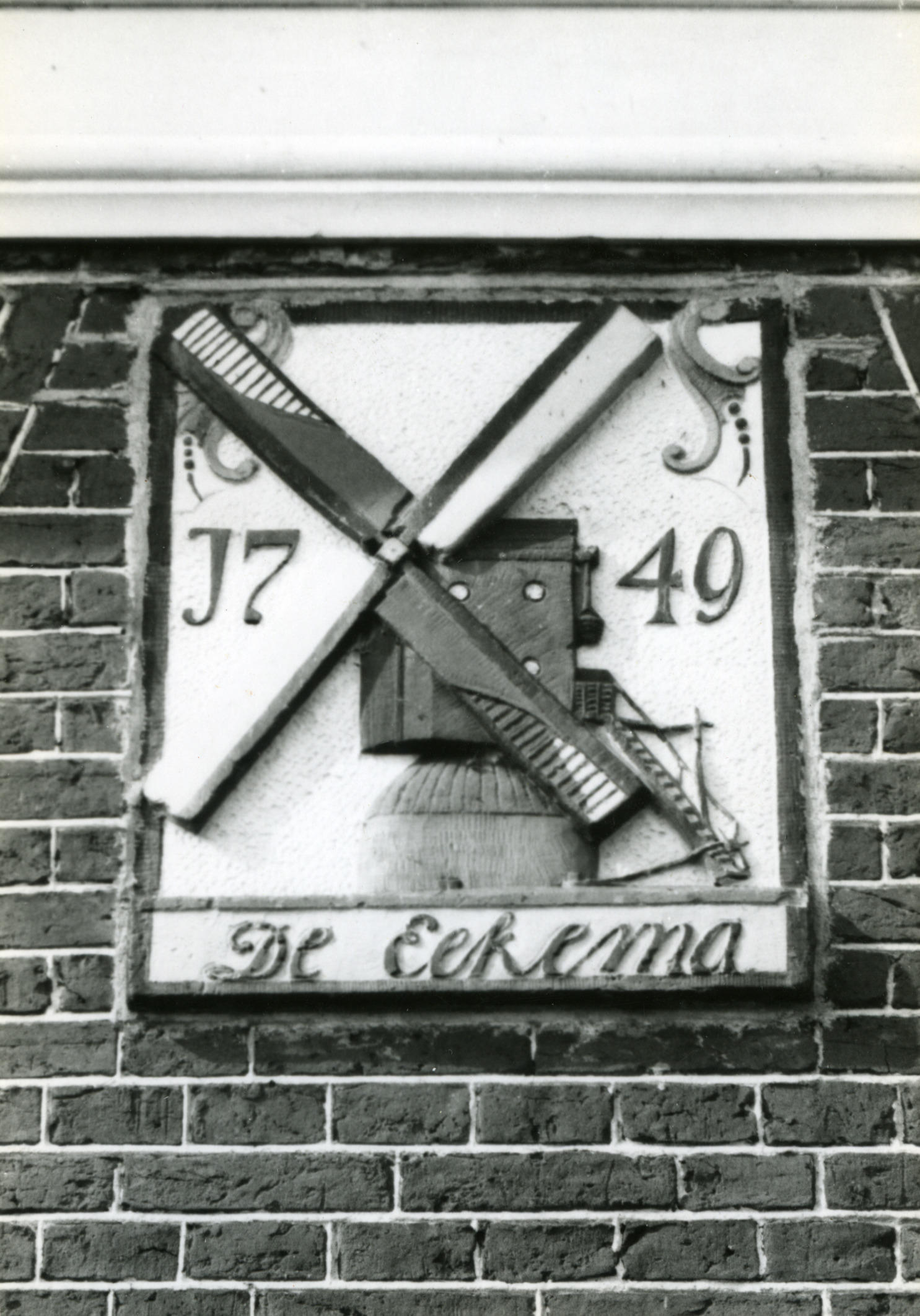 Gevelsteen uit 1749 met een afbeelding van de molen 'De Eekema' in IJlst.