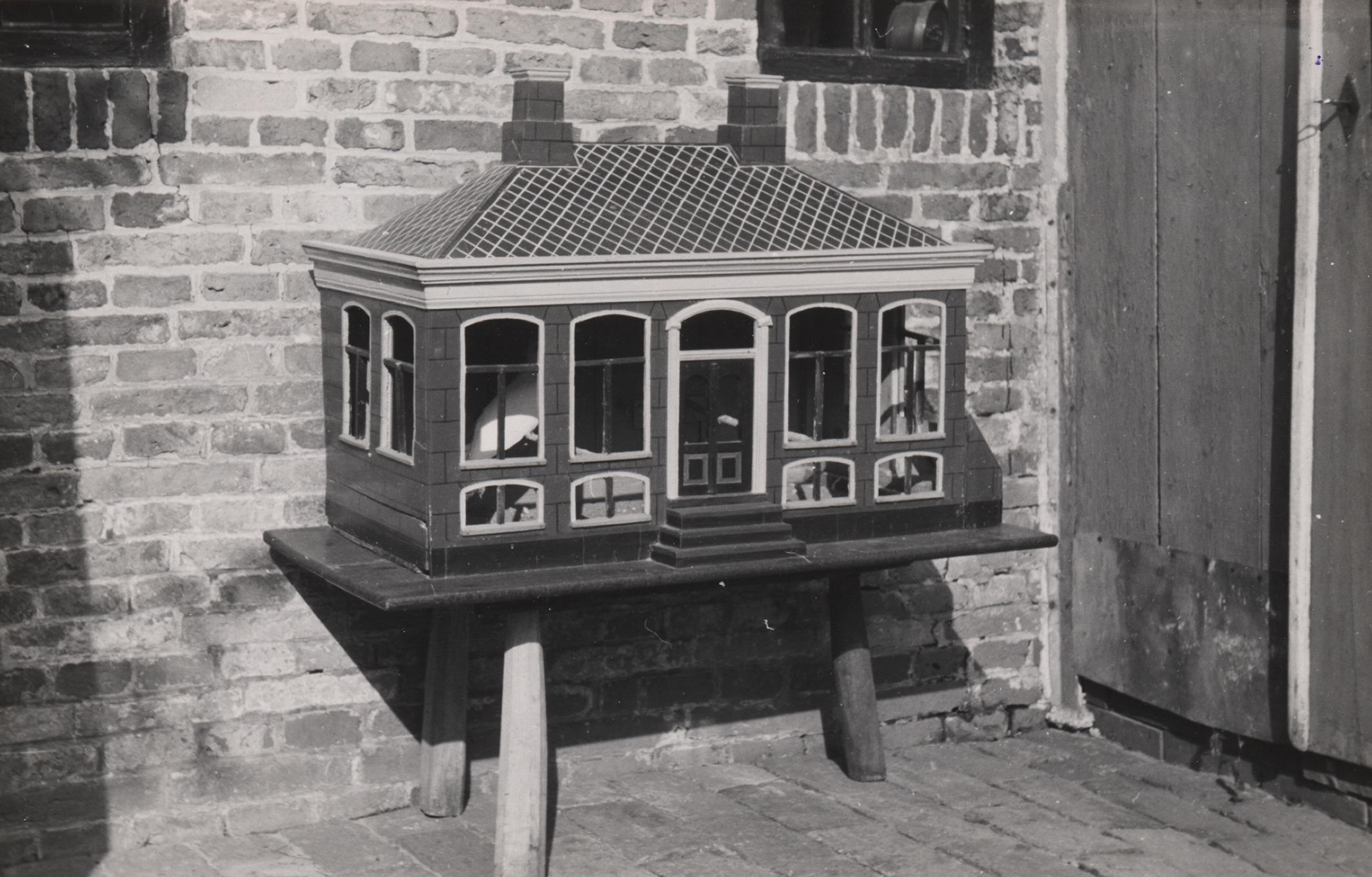 Duivenkooi in de vorm van een woning, eigendom van een familie in Zandeweer.