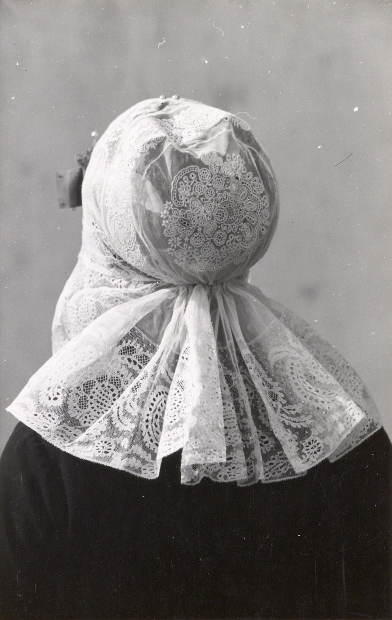 Dirkje Verdoes-Zwaan (*1924) heeft zich speciaal voor de foto verkleed in de Katwijkse streekdracht. Ze draagt de zogenaamde burgerdracht met de 'burgerkap'. Deze hoofdtooi werd tot circa 1915 algemeen in deze regio door de burgervrouwen in streekdracht gedragen bij speciale gelegenheden. De hoofdtooi bestaat uit een gouden oorijzer met gouden 'boeken' aan de uiteinden, een ...