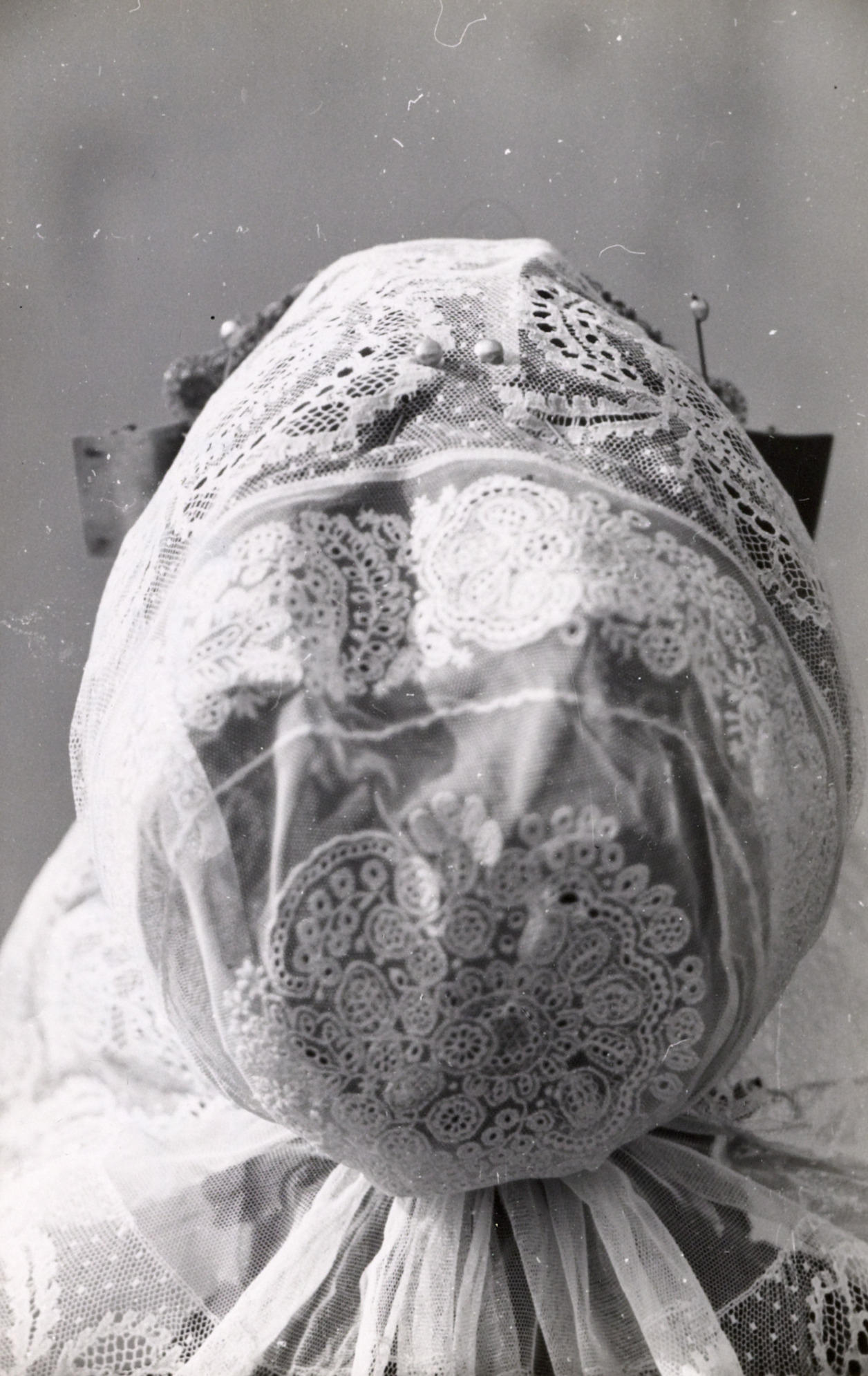 Dirkje Verdoes-Zwaan (*1924) heeft zich speciaal voor de foto verkleed in de Katwijkse streekdracht. Ze draagt de zogenaamde burgerdracht met de 'burgerkap'. Deze hoofdtooi werd tot circa 1915 algemeen in deze regio door de burgervrouwen in streekdracht gedragen bij speciale gelegenheden. De hoofdtooi bestaat uit een gouden oorijzer met gouden 'boeken' aan de uiteinden, een ...