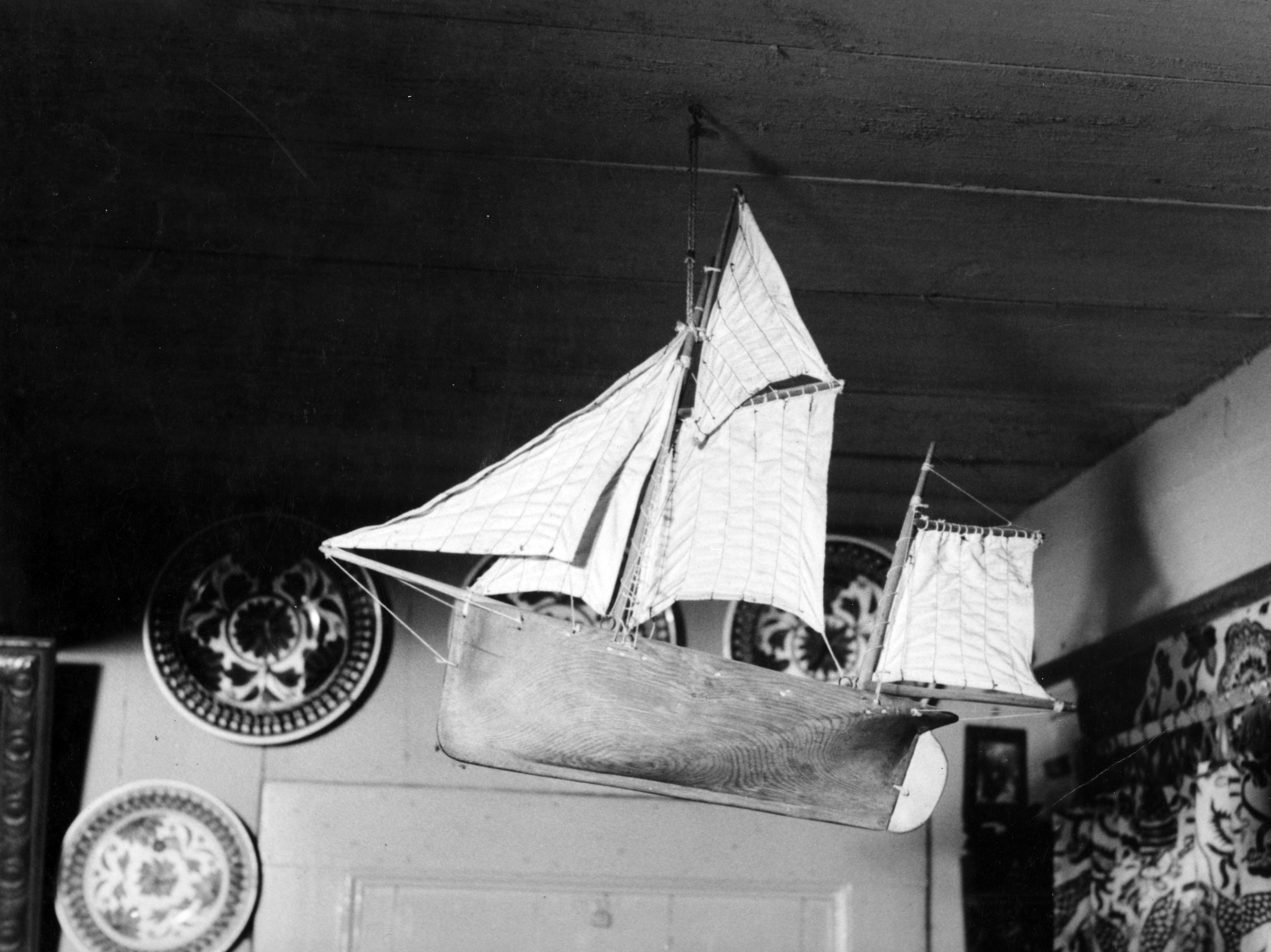 Scheepsmodel, Marken, 1943 (zwart-wit foto)