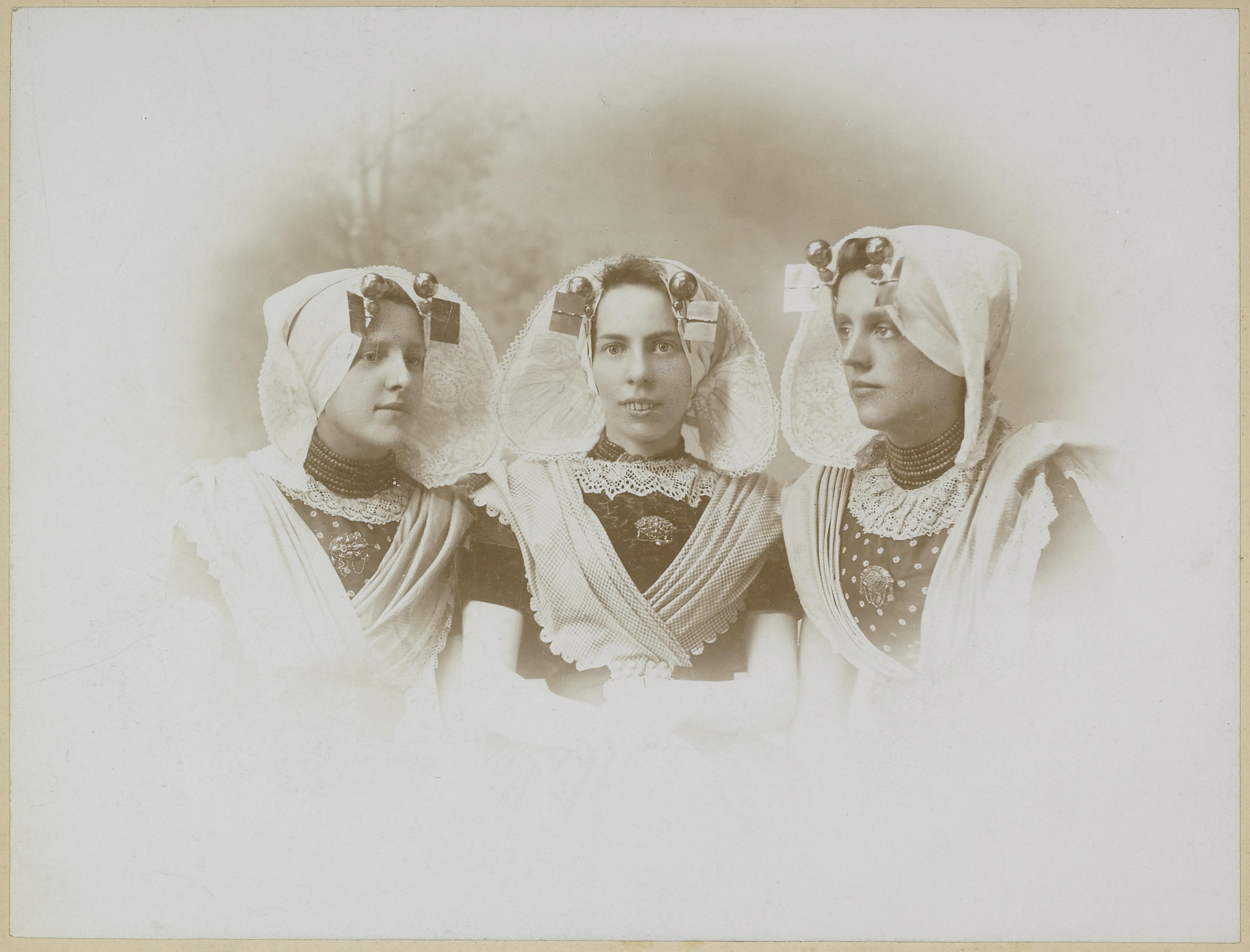 Drie vrouwen in protestantse Zuid-Bevelandse streekdracht.