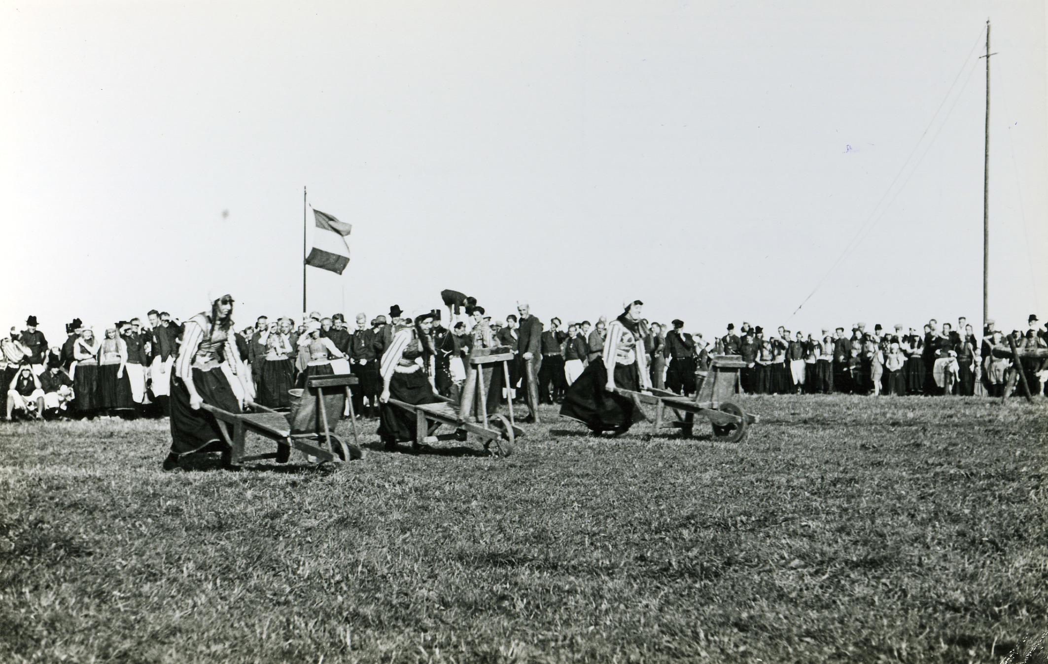 Oranjefeest op Marken, 1945 (zwart-wit foto)